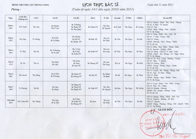 Lịch công tác tuần 14 năm 2011 | BVPSTW | 25-03-2011 | 28-03-2011 |