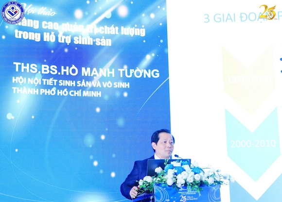 Ths.bs Hồ Mạnh Tường, Tổng Thư ký Hội Nội tiết Sinh sản và Vô sinh TP.HCM trình bày bài báo cáo “Quản trị chất lượng trong Hỗ trợ sinh sản