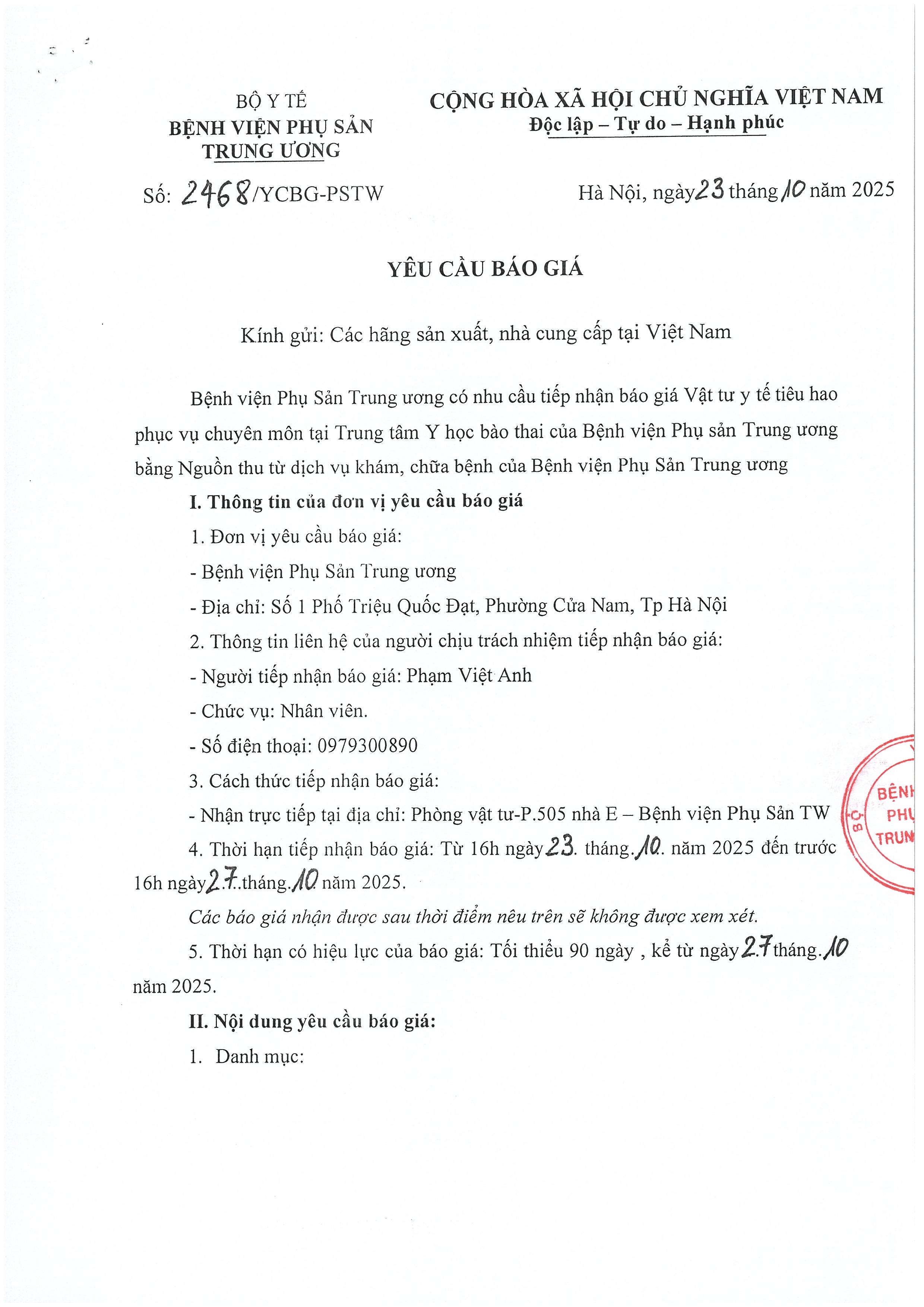 Kính gửi: Các hãng sản xuất, nhà cung cấp tại Việt Nam