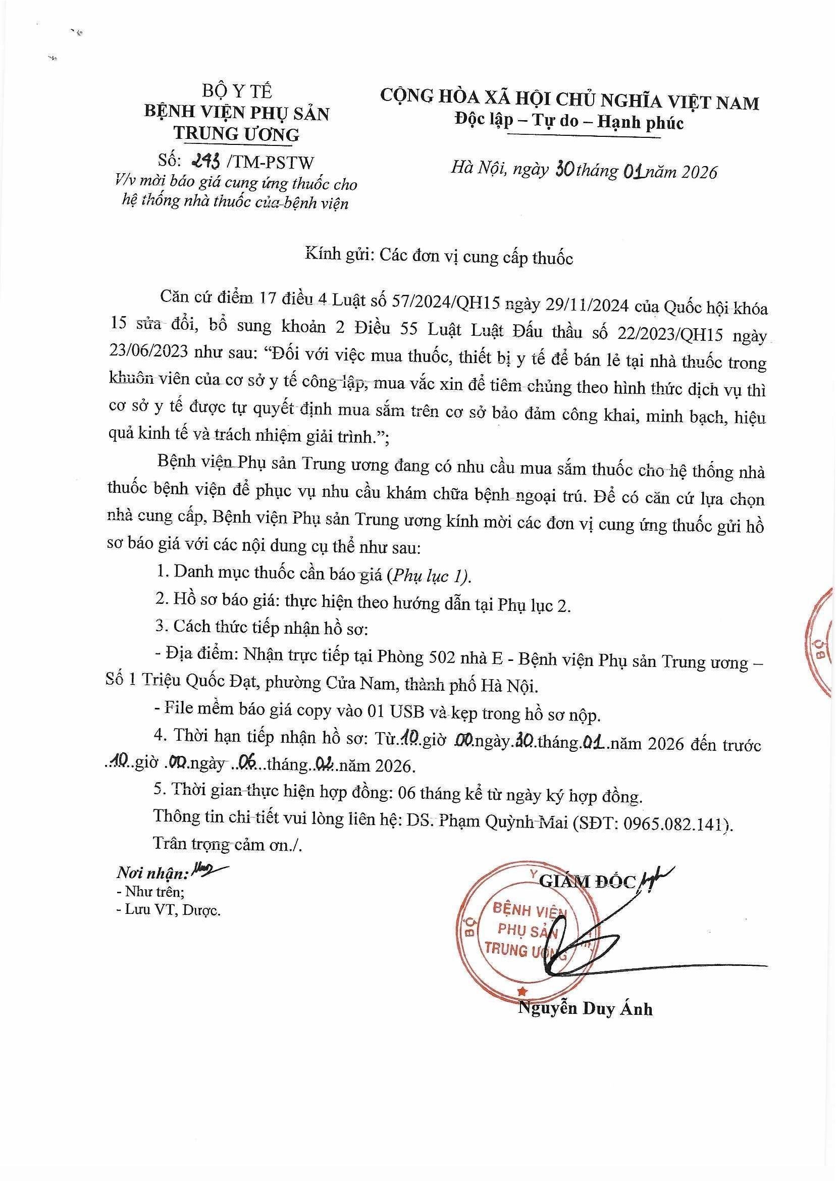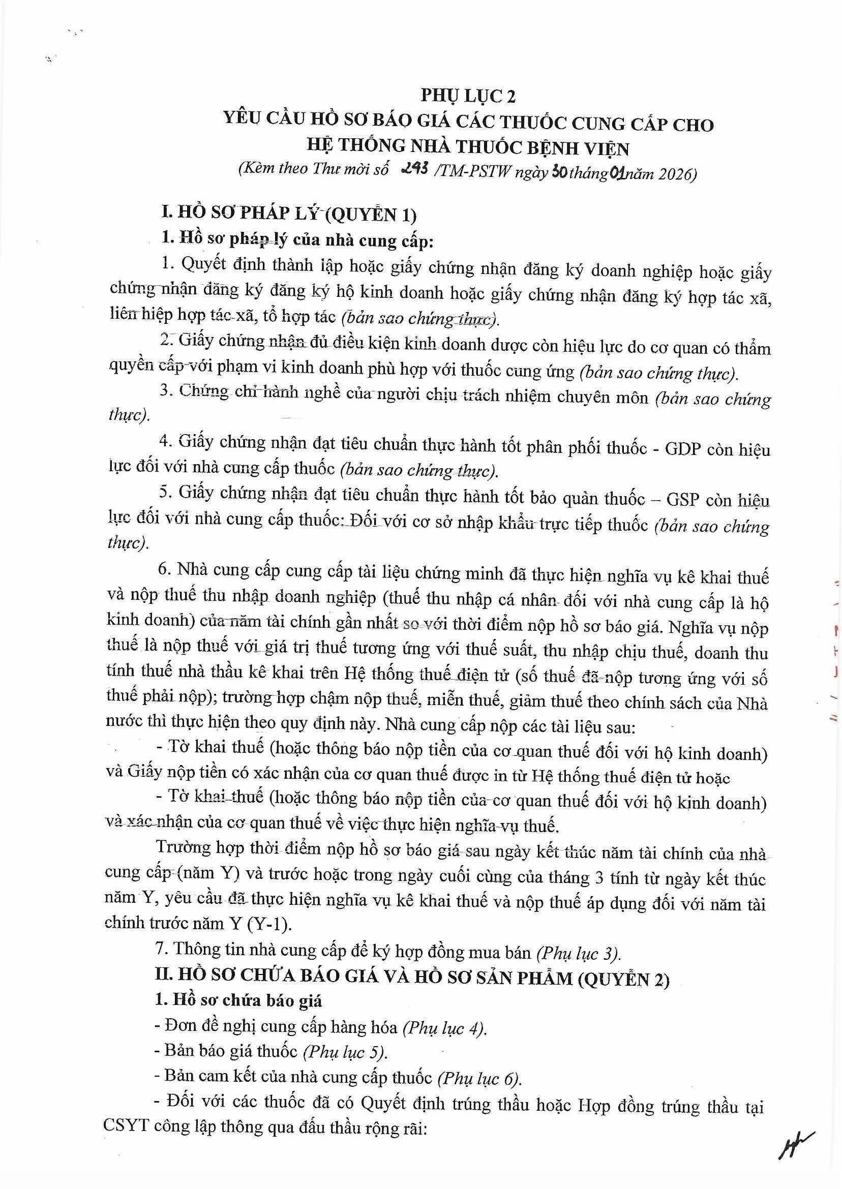 Thư mời báo giá số 243/TM-PSTW ngày 30/01/2026