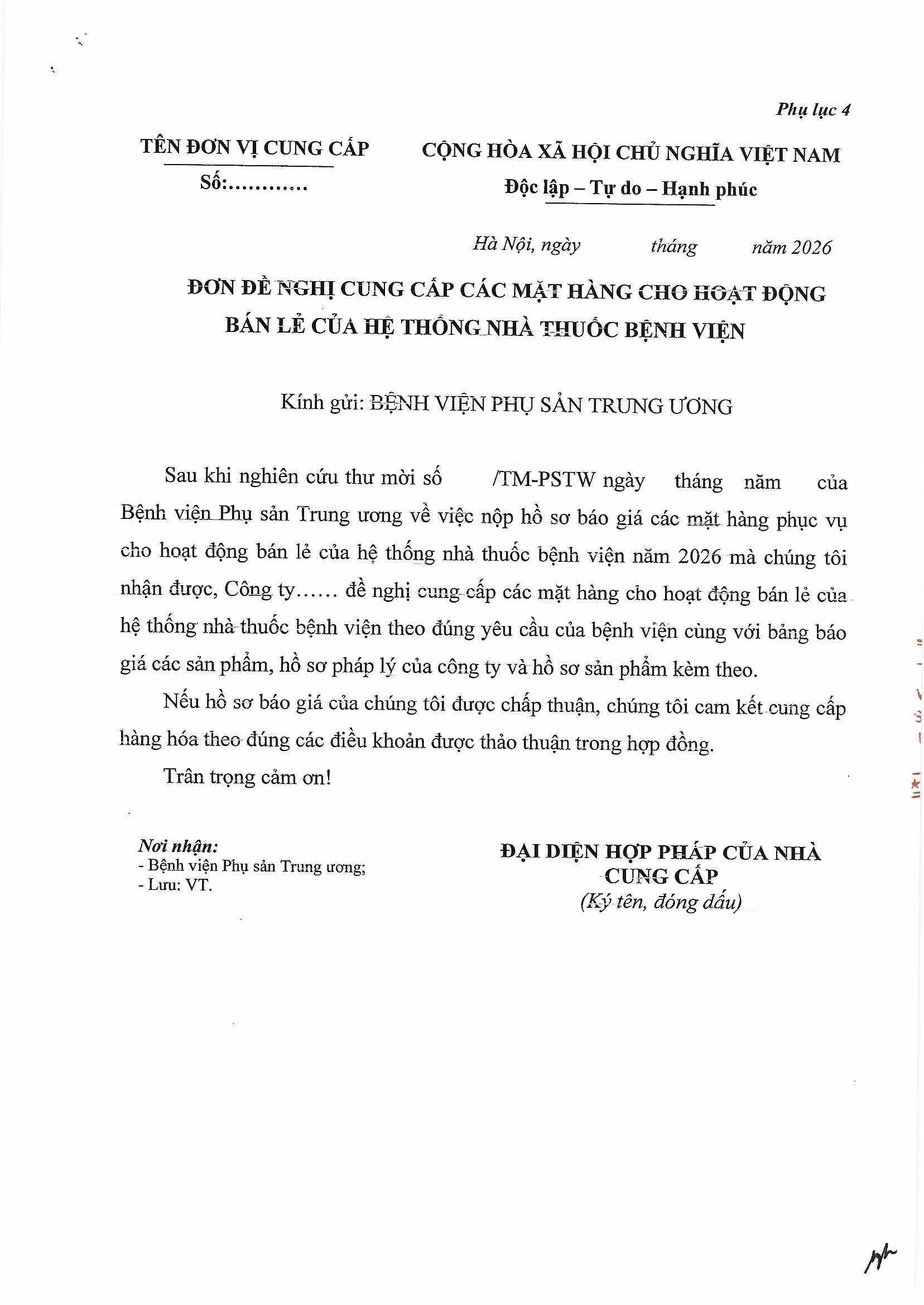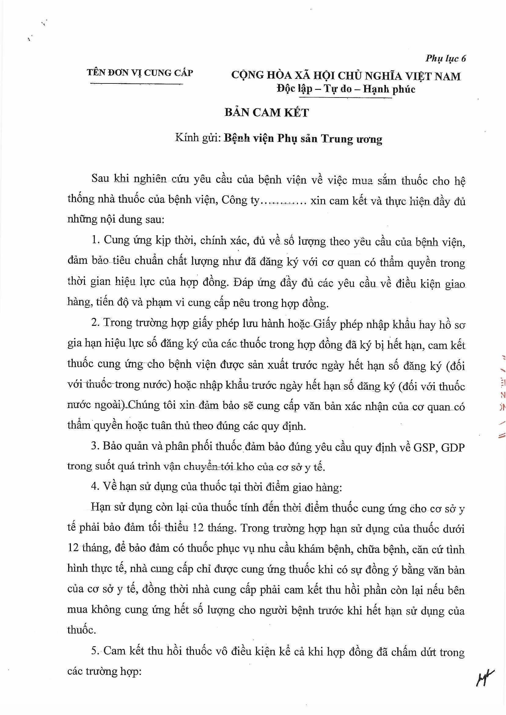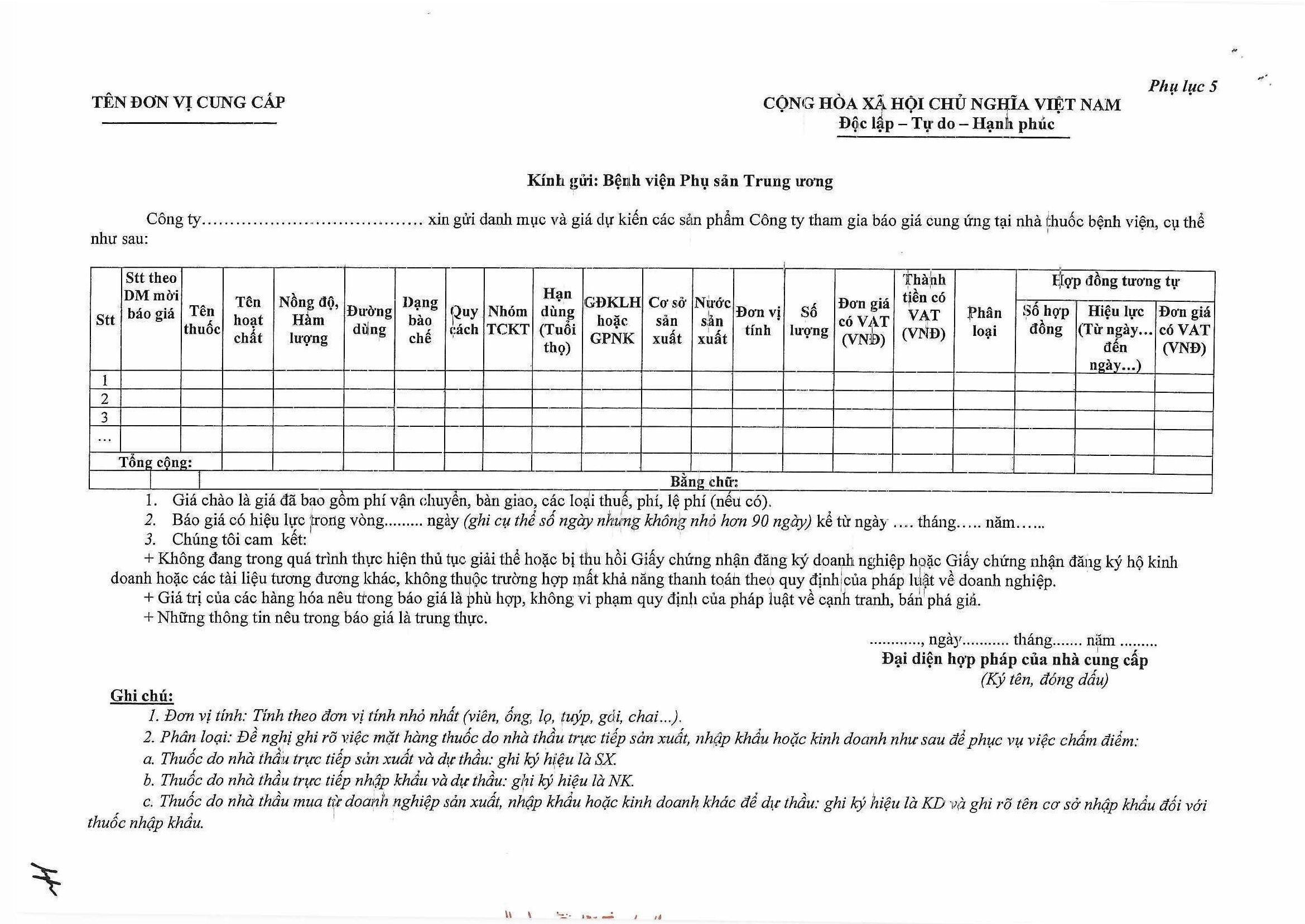 Kính gửi: Các đơn vị cung cấp thuốc