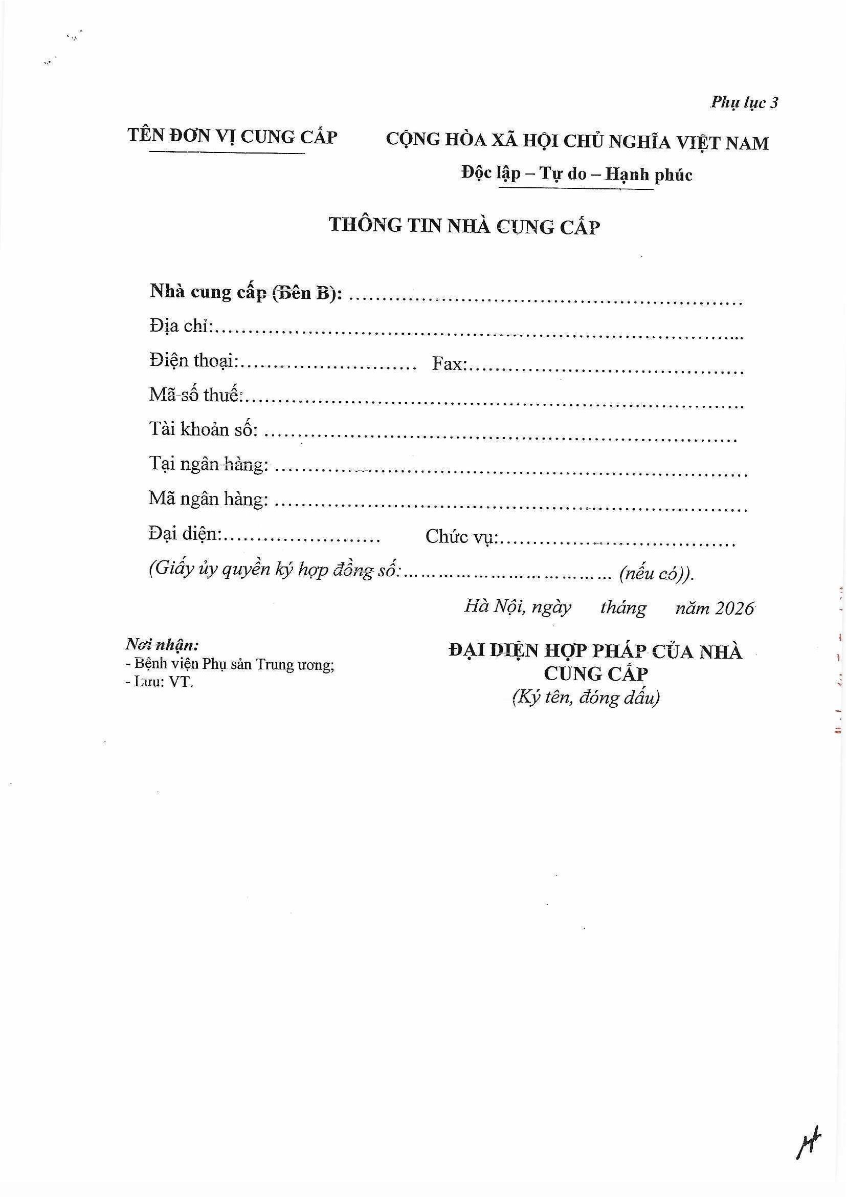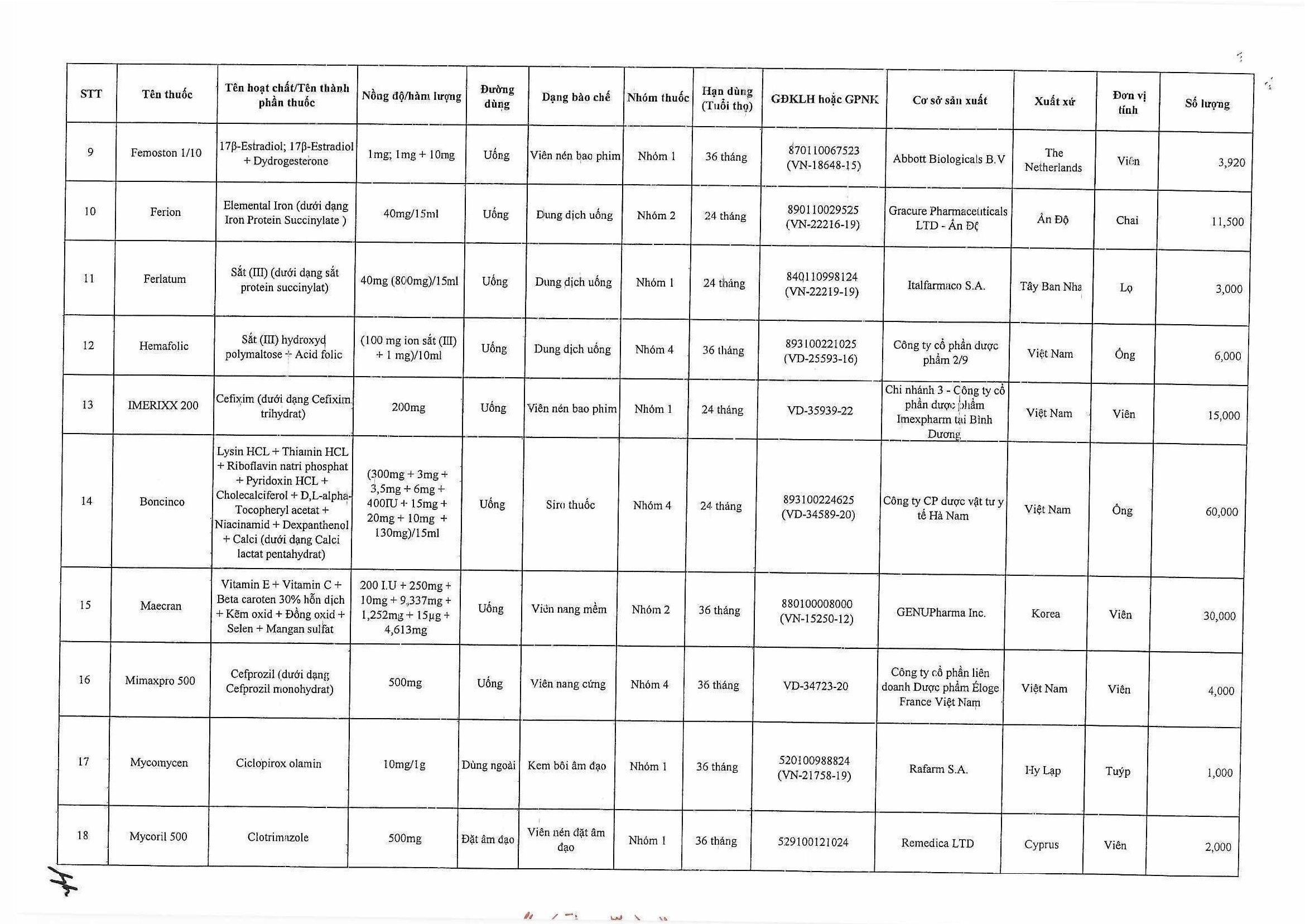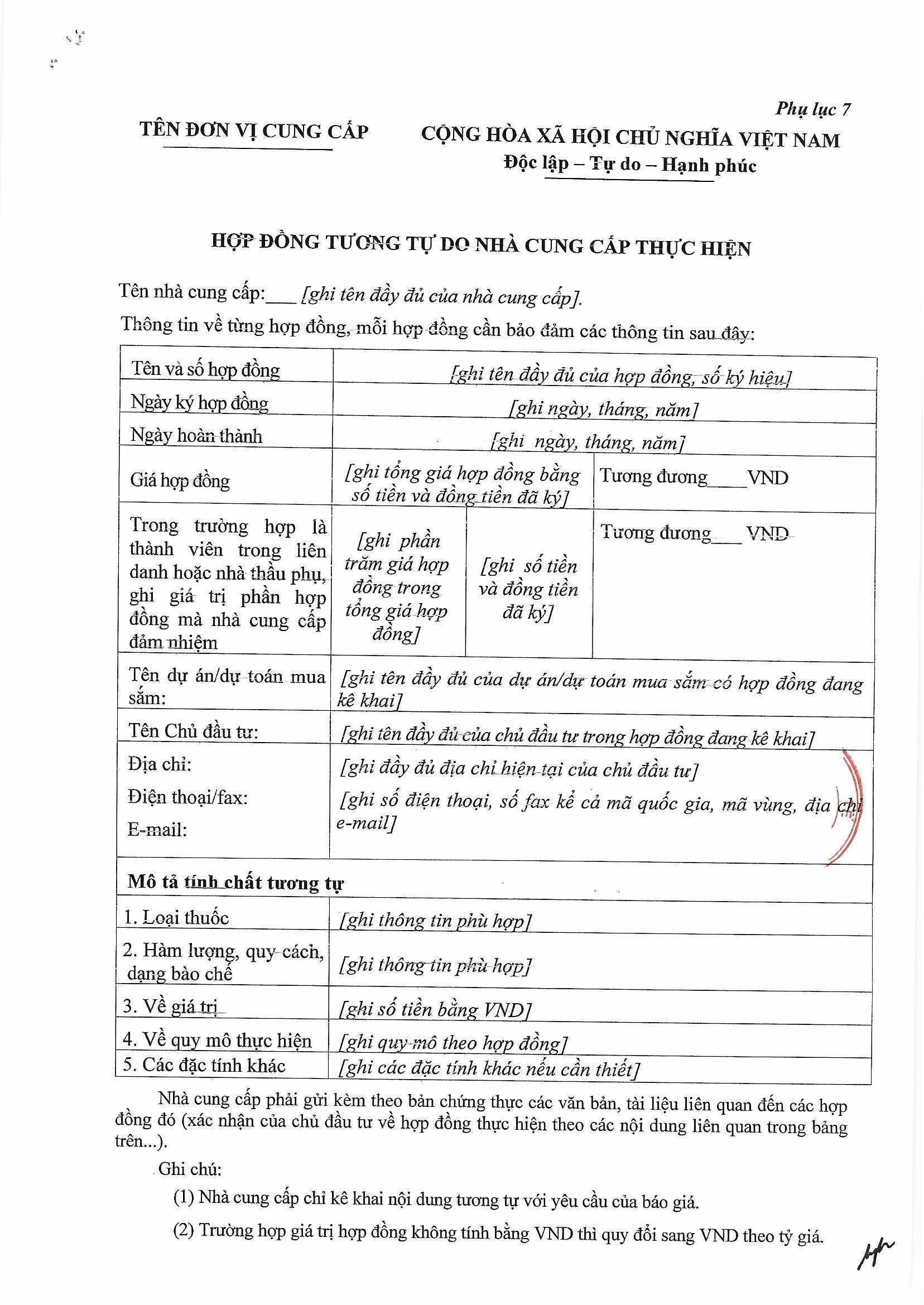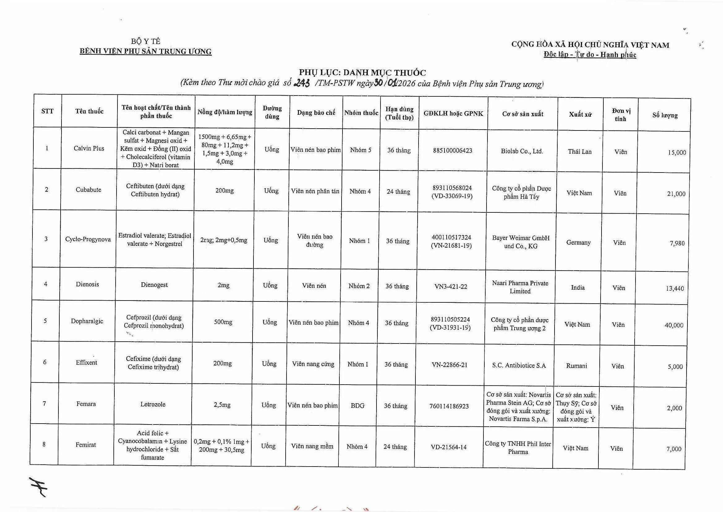 Kính gửi: Các đơn vị cung cấp thuốc