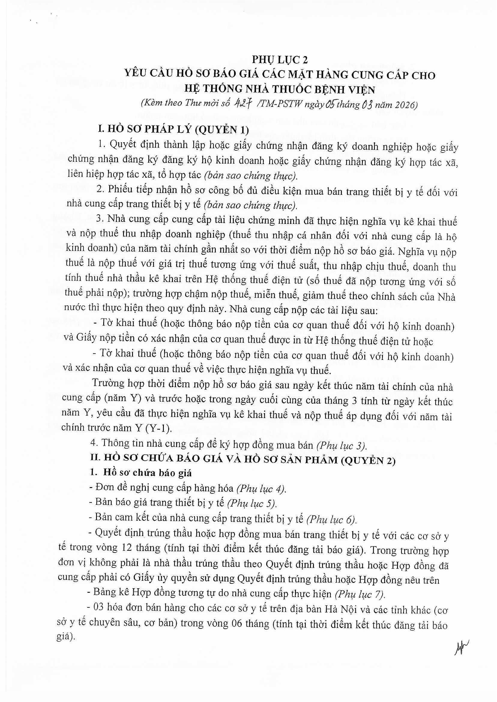 Thư mời báo giá số 427/TM-PSTW ngày 05/03/2026