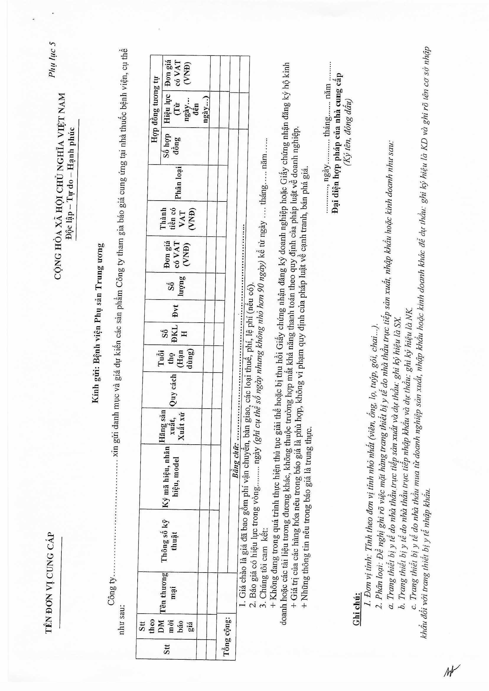 Kính gửi: Các đơn vị cung cấp Thiết bị y tế