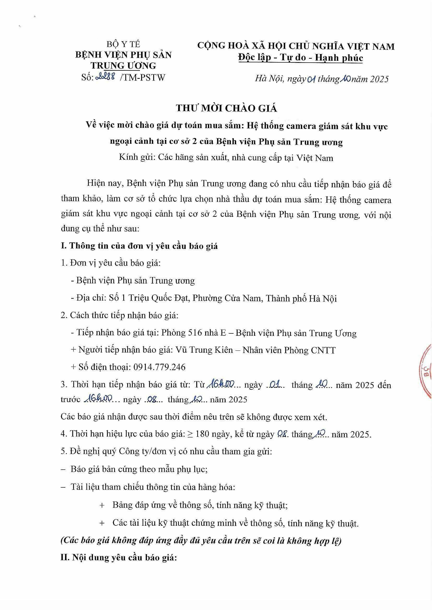 Thư mời chào giá số 2288/TM-PSTW ngày 01/10/2025