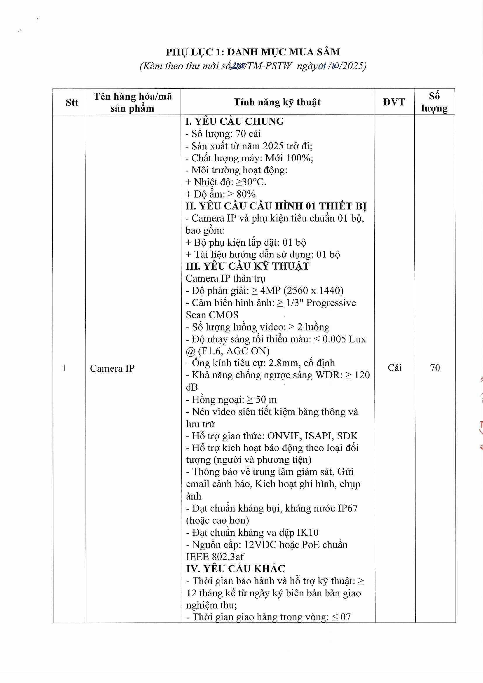 Thư mời chào giá số 2278/TM-PSTW ngày 29/09/2025