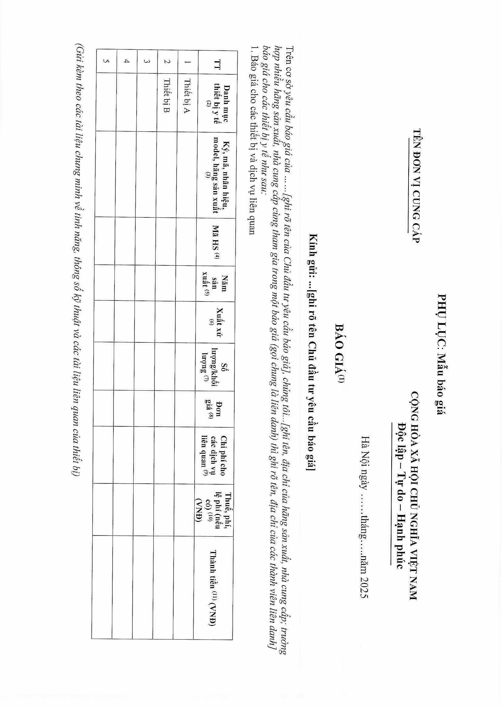 Kính gửi: Các hãng sản xuất, nhà cung cấp tại Việt Nam