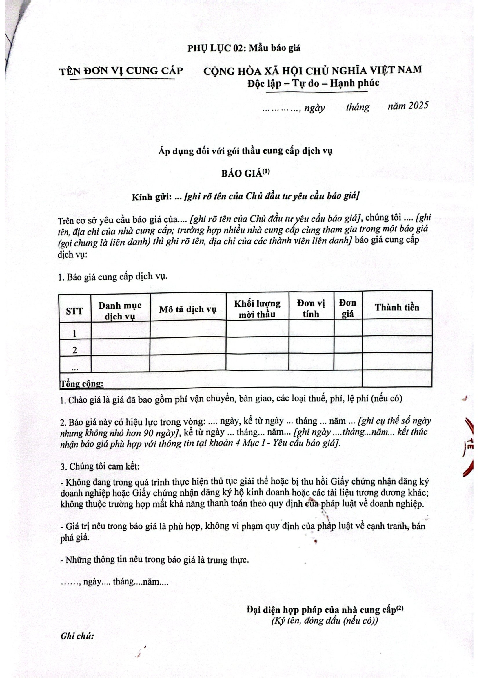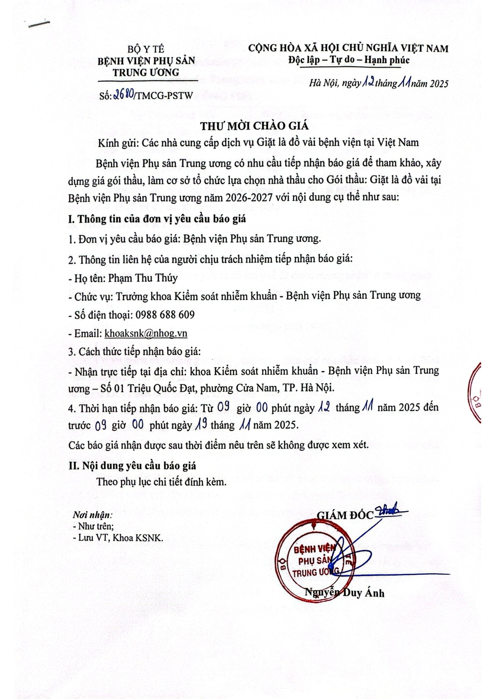 Thư mời chào giá số 2680/TMBG-PSTW ngày 12/11/2025