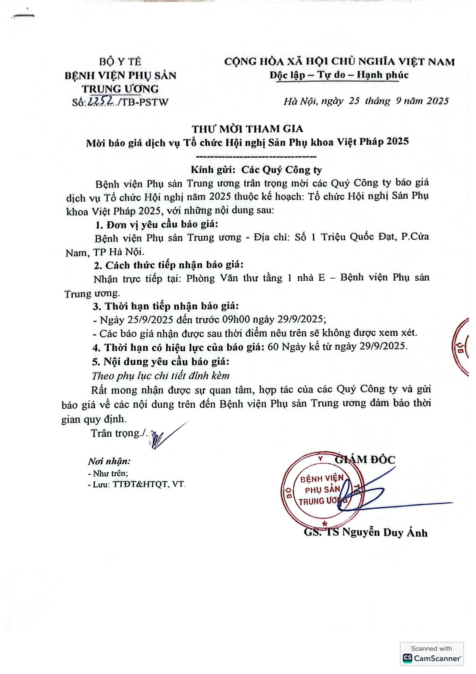 Thư mời chào giá số 2238/TM-PSTW ngày 24/09/2025