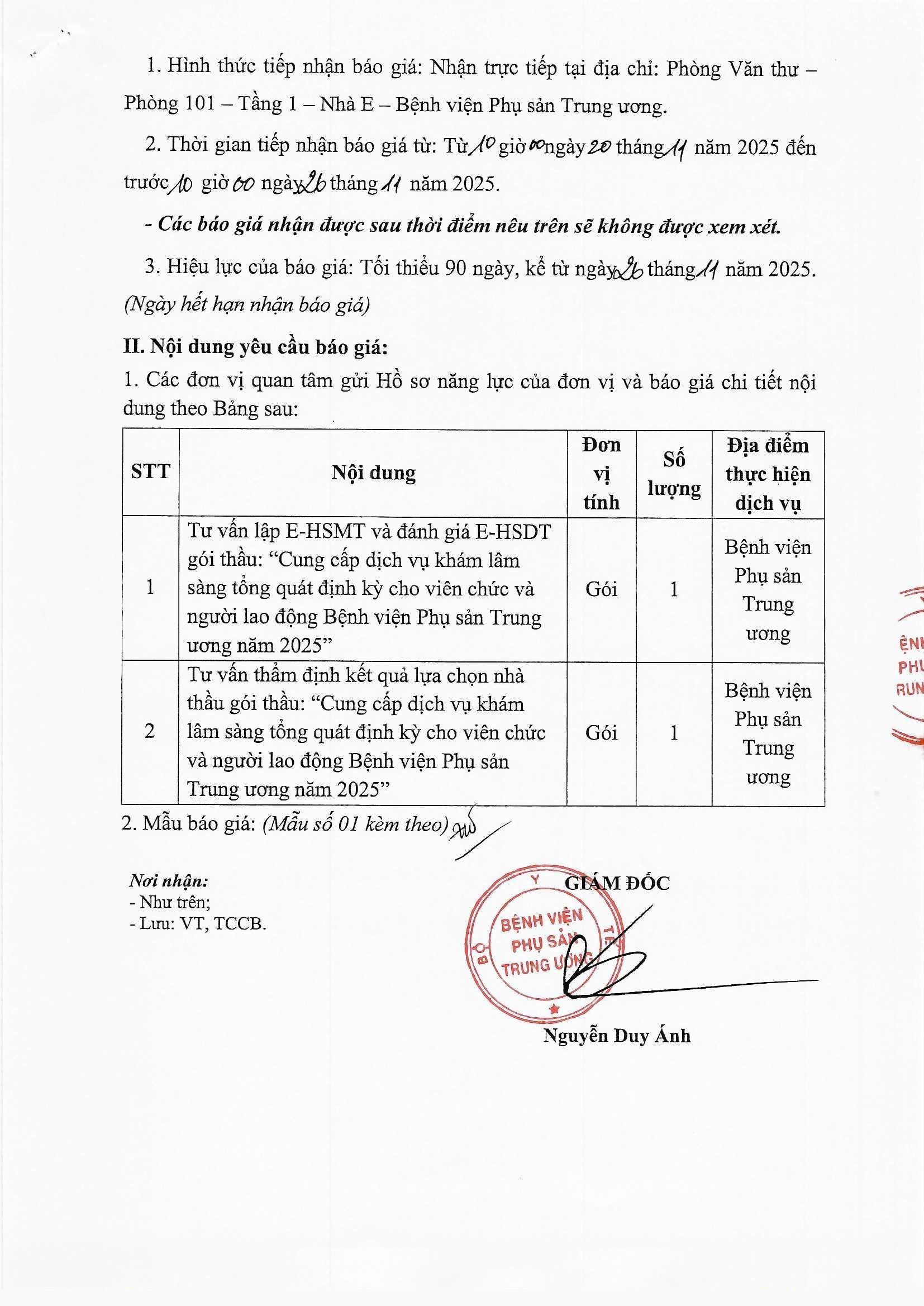 Yêu cầu báo giá 2749/YCBG-PSTW ngày 20/11/2025