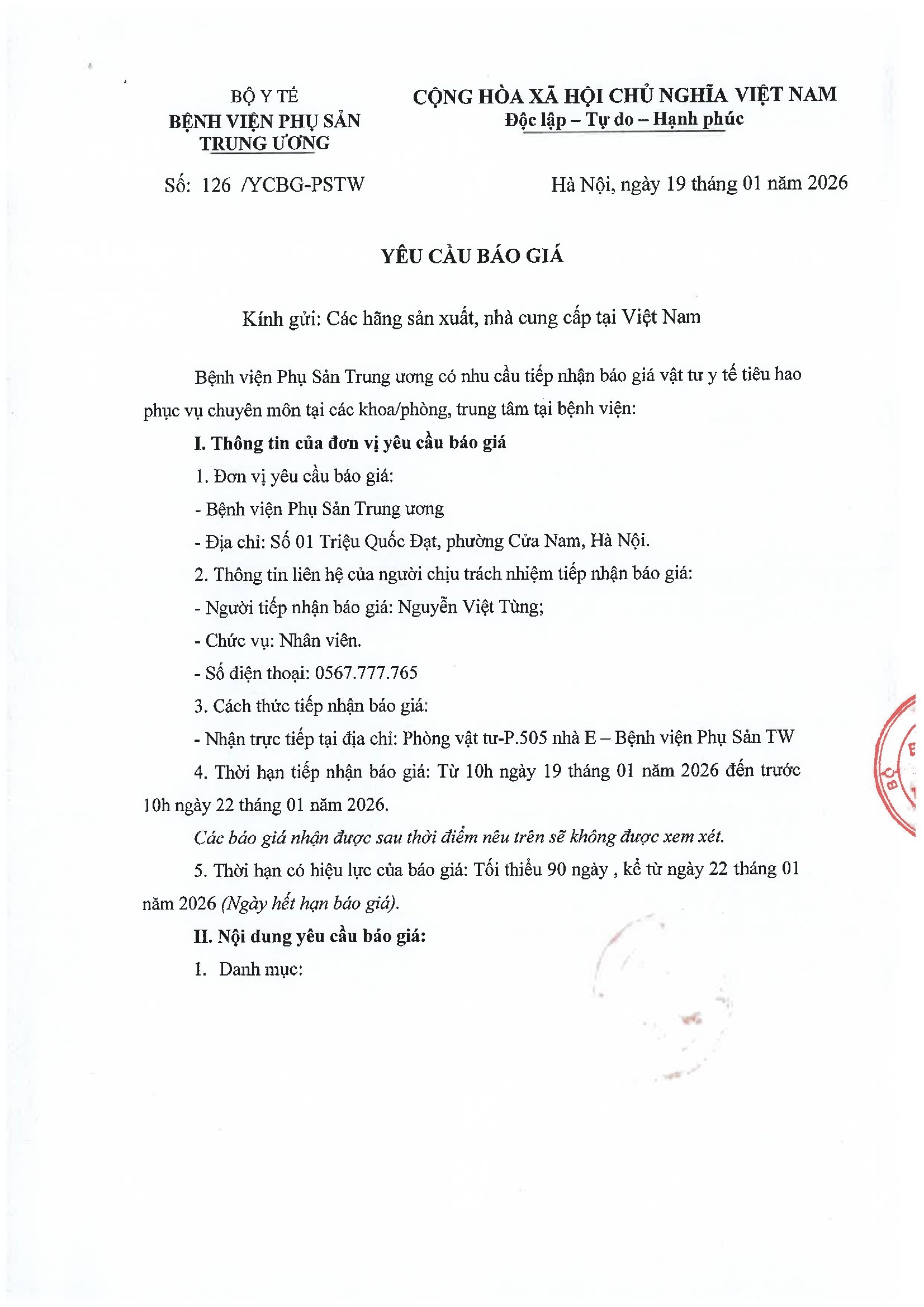Yêu cầu báo giá số 126/YCBG-PSTW ngày 19/01/2026