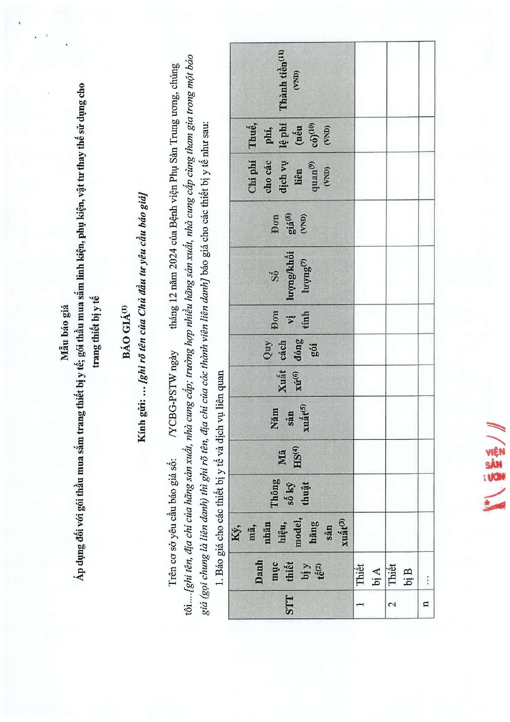 Kính gửi: Các hãng sản xuất, nhà cung cấp tại Việt Nam