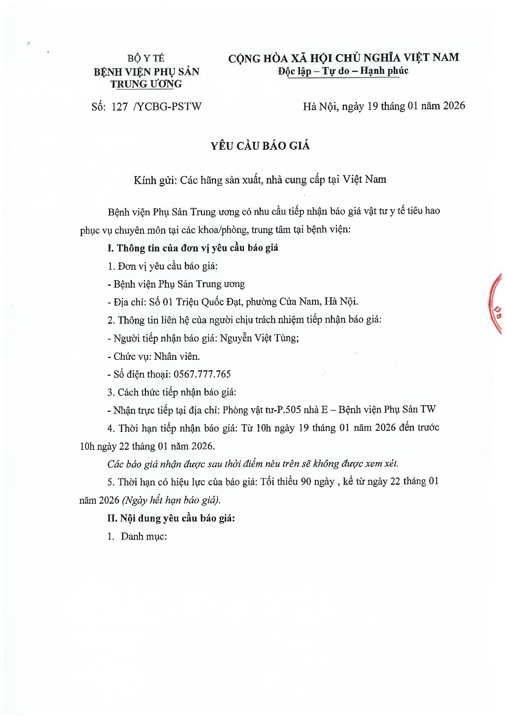 Yêu cầu báo giá số 127/YCBG-PSTW ngày 19/01/2026