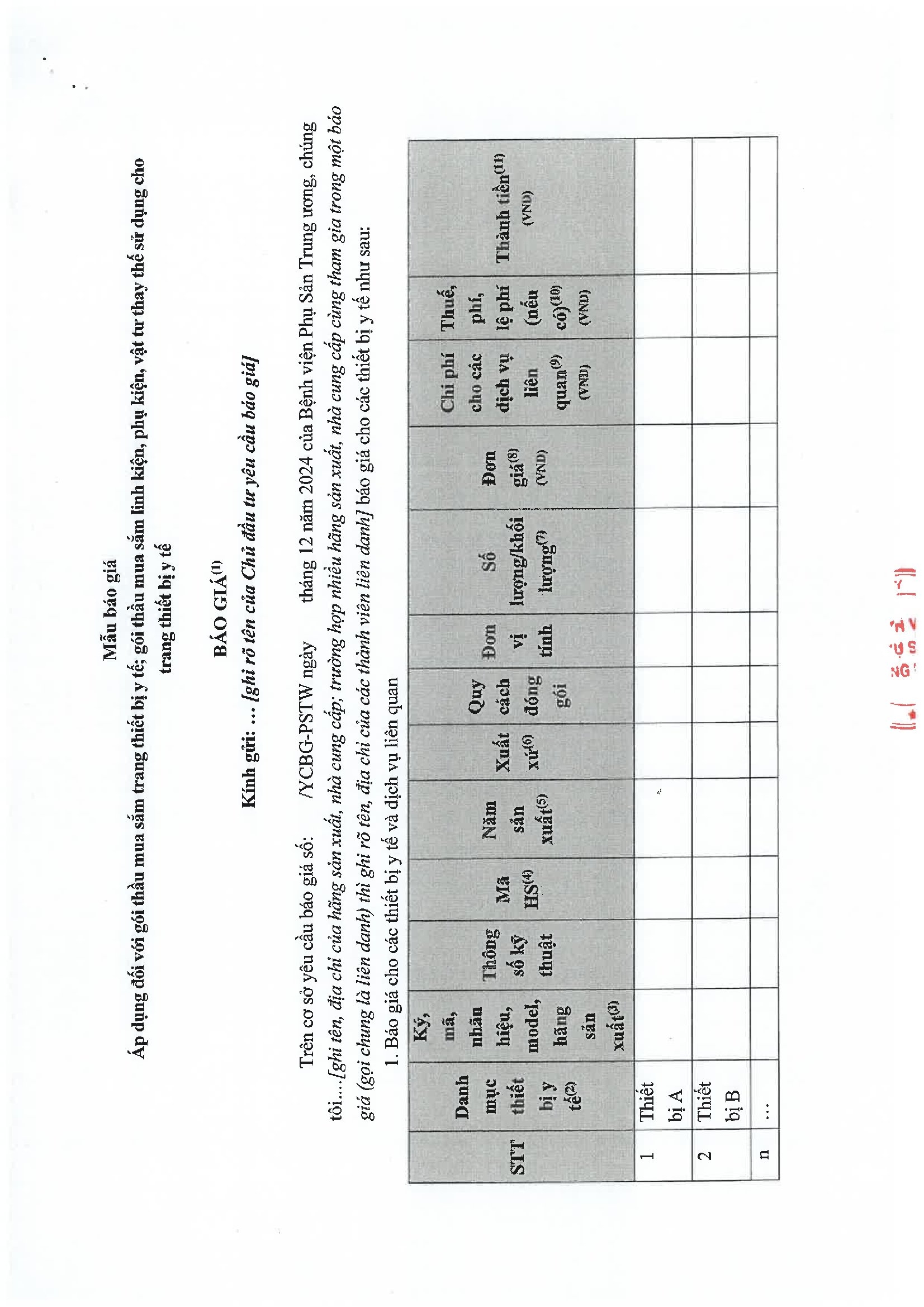 Kính gửi: Các hãng sản xuất, nhà cung cấp tại Việt Nam