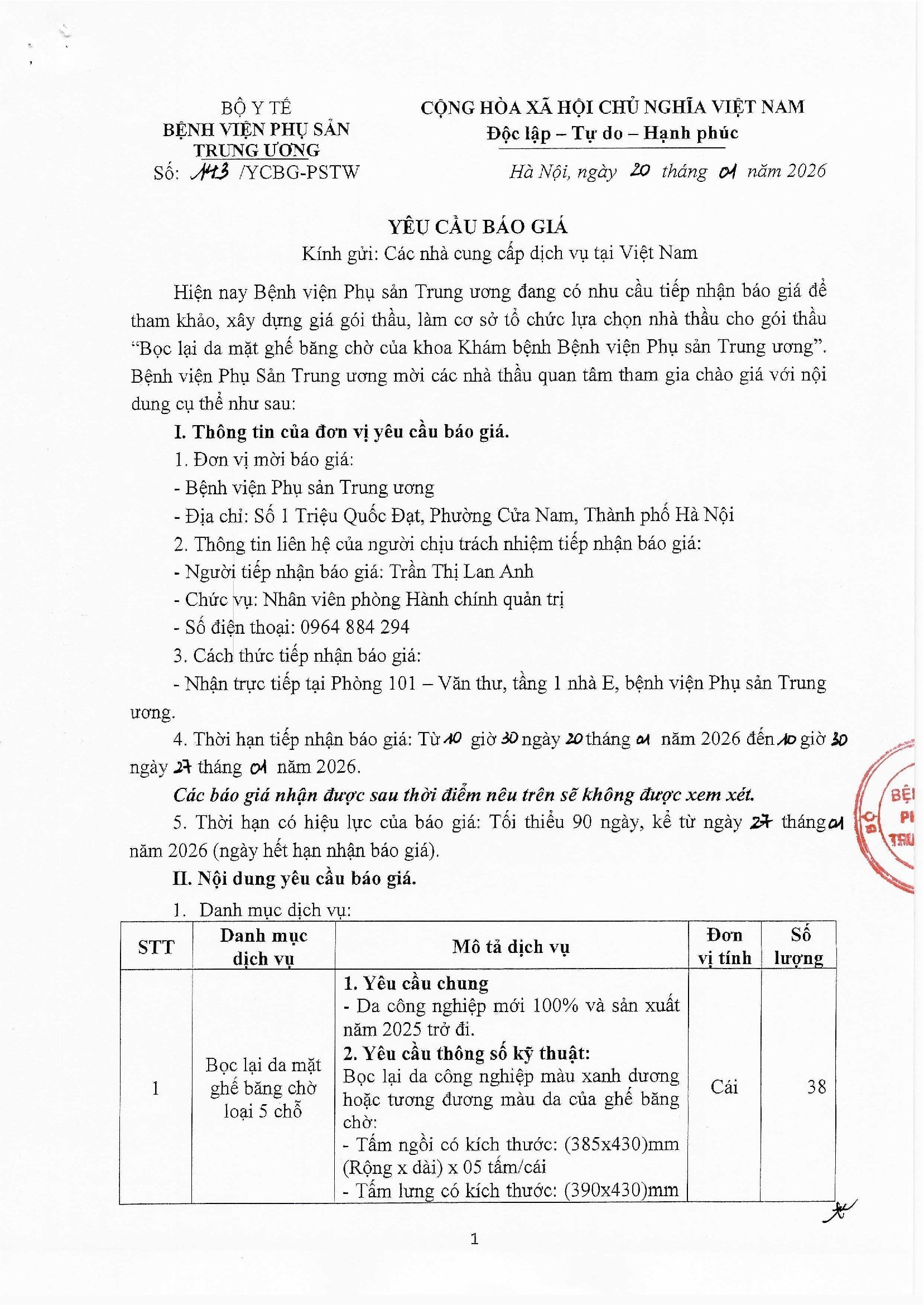 Yêu cầu báo giá số 145/YCBG-PSTW ngày 20/01/2026