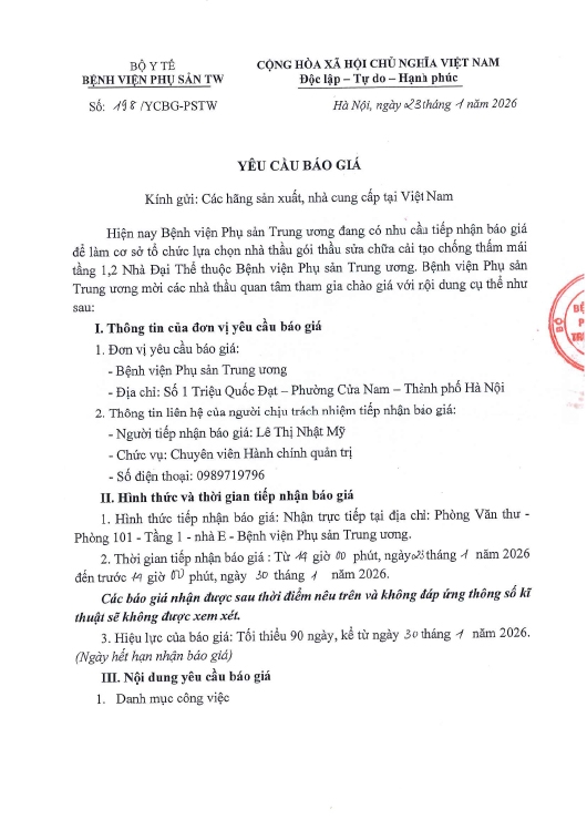 Yêu cầu báo giá số 198/YCBG-PSTW ngày 23/01/2026