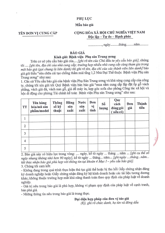 Kính gửi: Các hãng sản xuất, nhà cung cấp tại Việt Nam