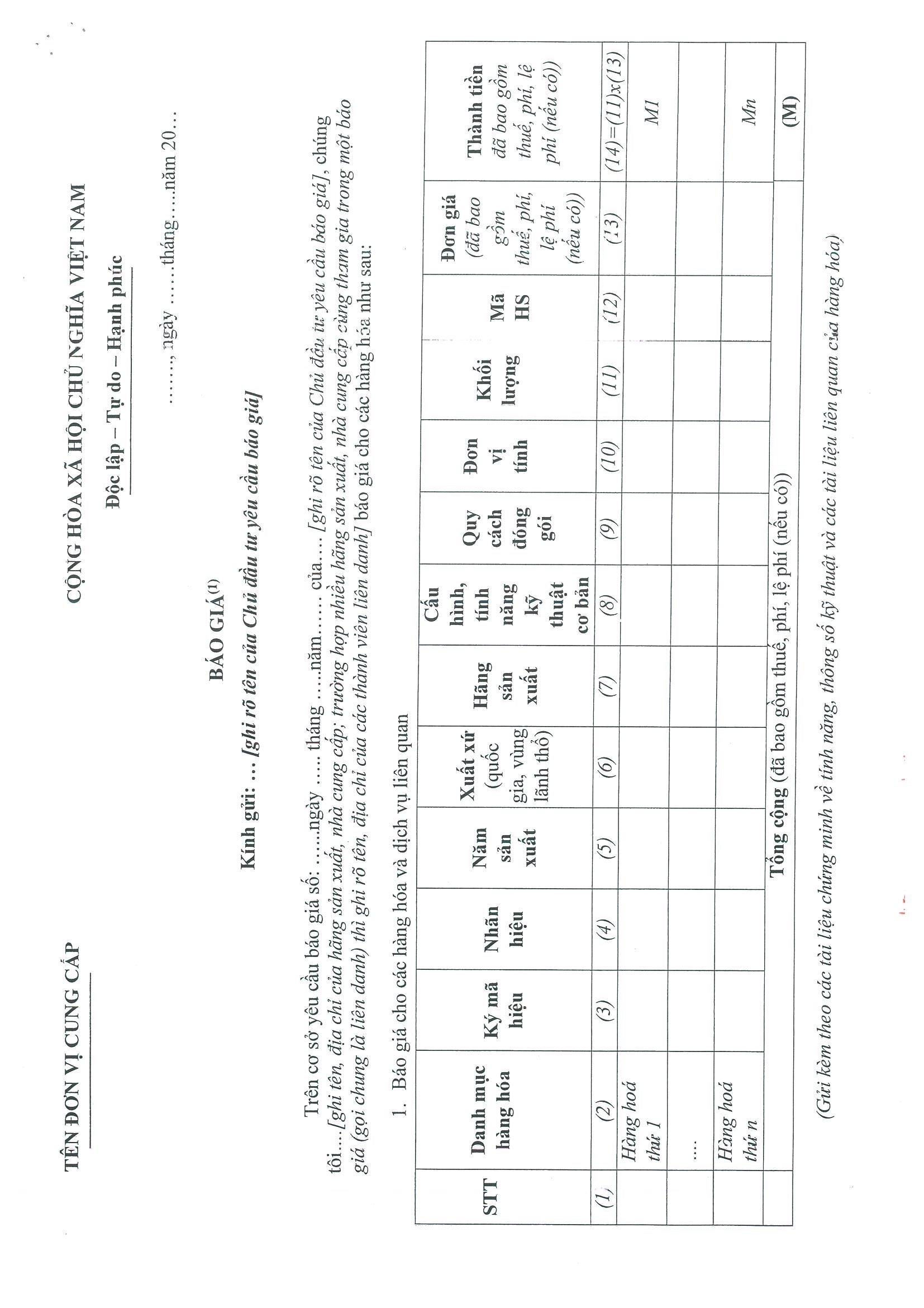 Kính gửi: Các hãng sản xuất, nhà cung cấp tại Việt Nam