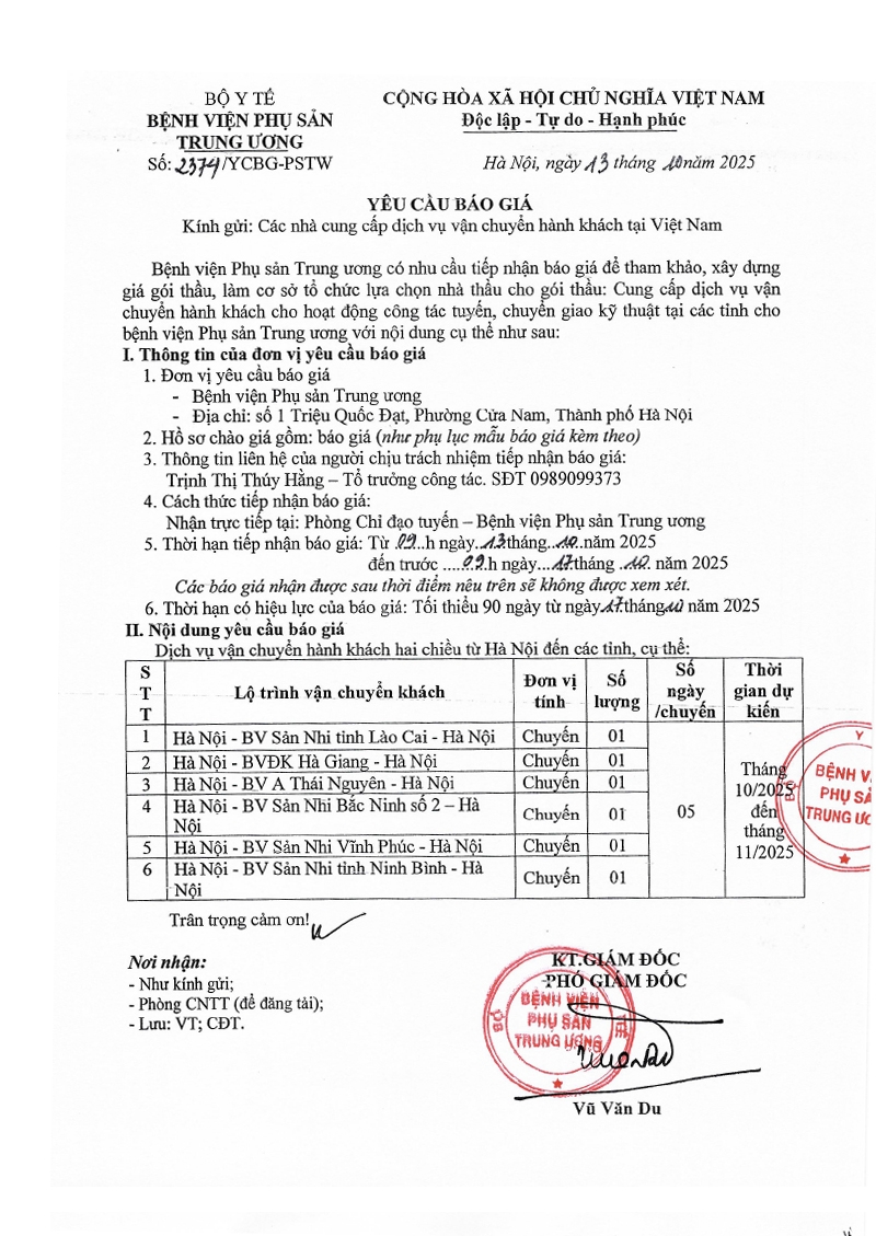 Yêu cầu báo giá số 2374/YCBG-PSTW ngày 13/10/2025