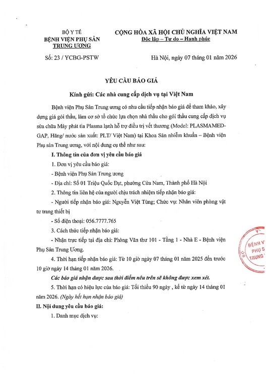 Yêu cầu báo giá số 23/YCBG-PSTW ngày 07/01/2026