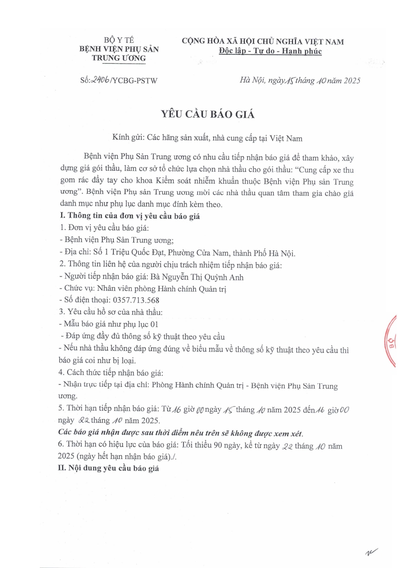 Yêu cầu báo giá số 2379/YCBG-PSTW ngày 13/10/2025