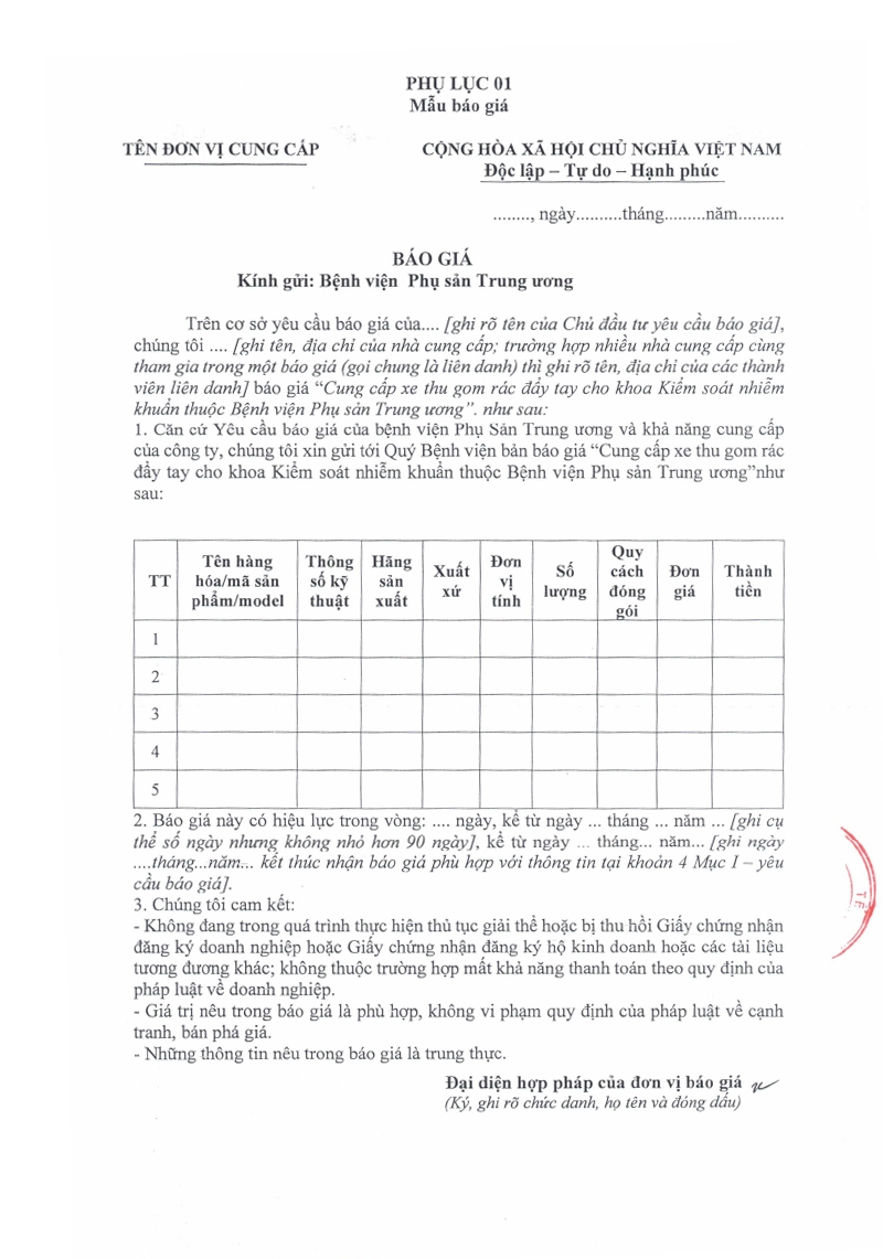 Kính gửi: Các hãng sản xuất, nhà cung cấp tại Việt Nam