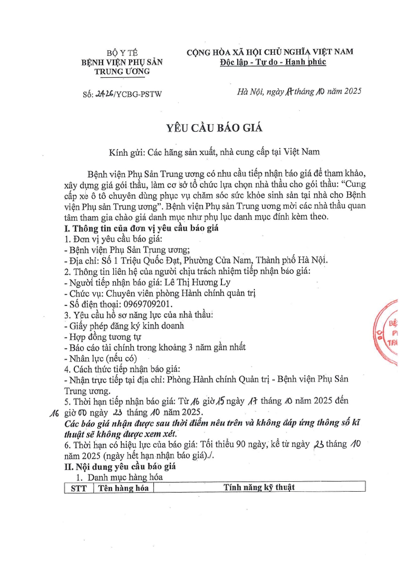 Yêu cầu báo giá số 2426/YCBG-PSTW ngày 17/10/2025