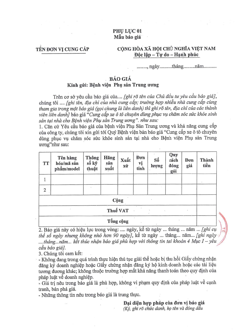 Kính gửi: Các hãng sản xuất, nhà cung cấp tại Việt Nam