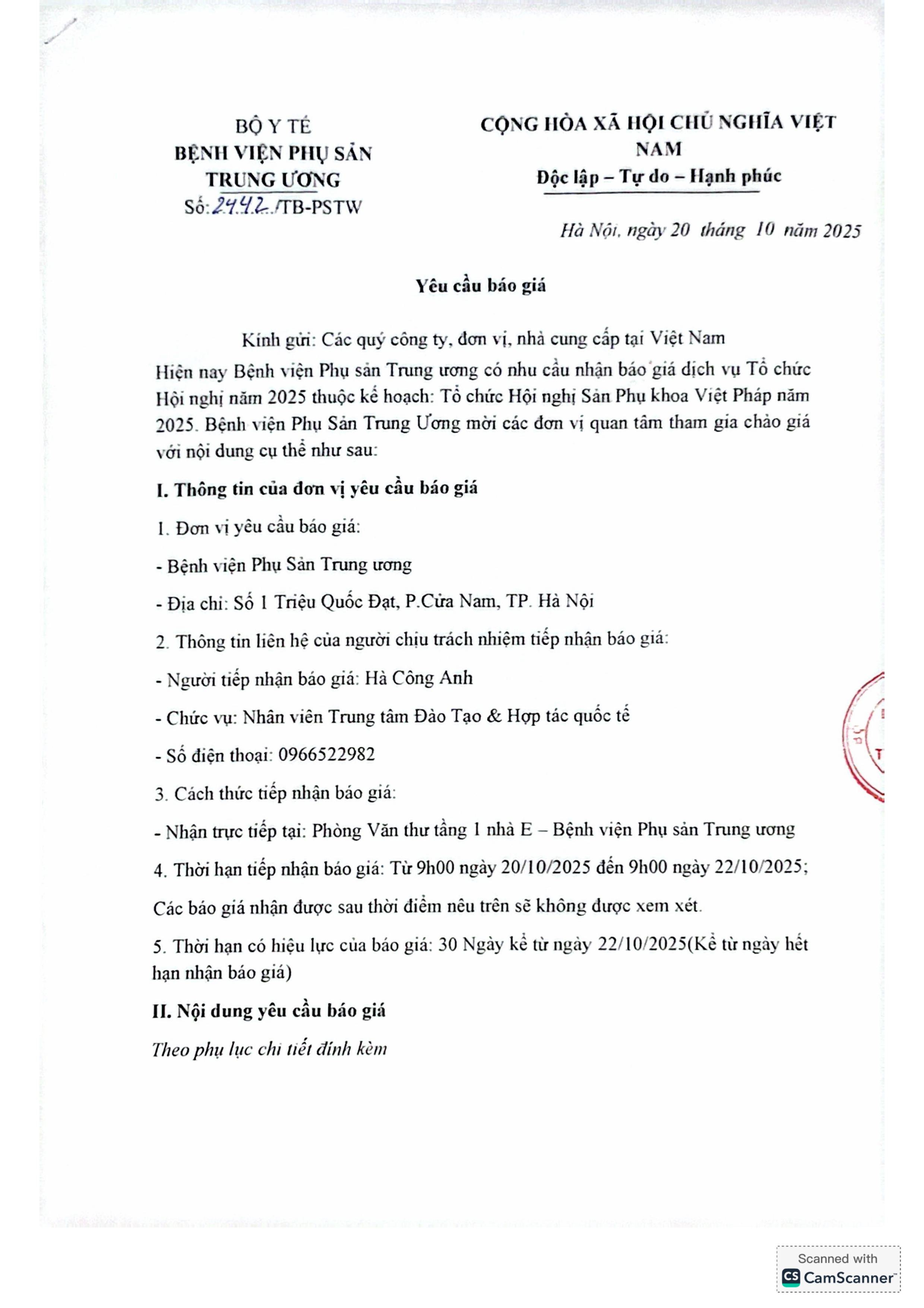 Yêu cầu báo giá số 2442/TB-PSTW ngày 20/10/2025