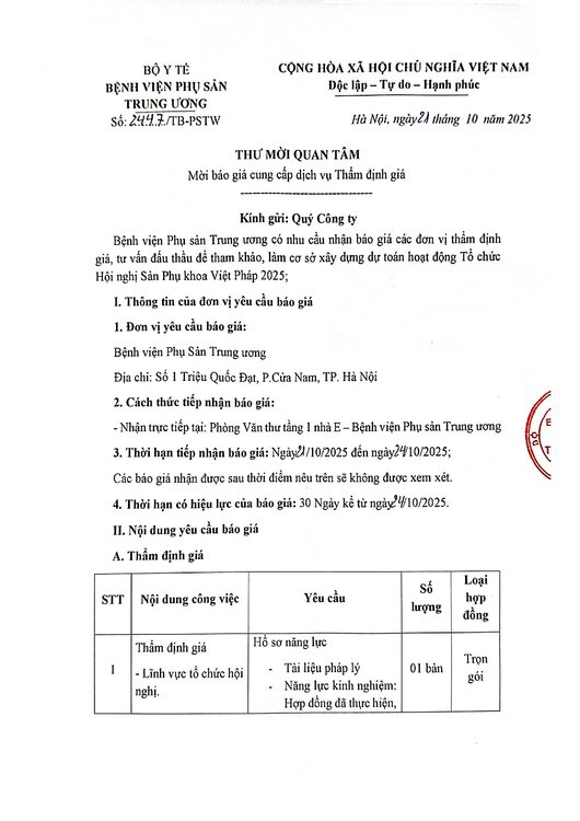 Yêu cầu báo giá số 2447/TB-PSTW ngày 21/10/2025