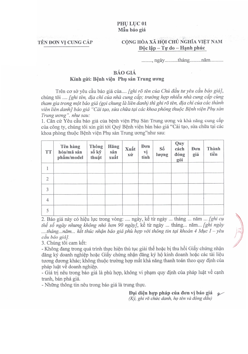 Kính gửi: Các hãng sản xuất, nhà cung cấp tại Việt Nam