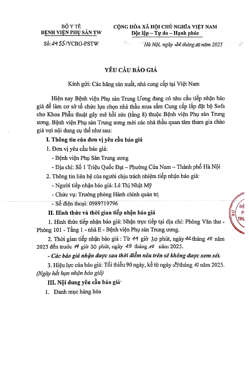 Yêu cầu báo giá số 2455/YCBG-PSTW ngày 22/10/2025
