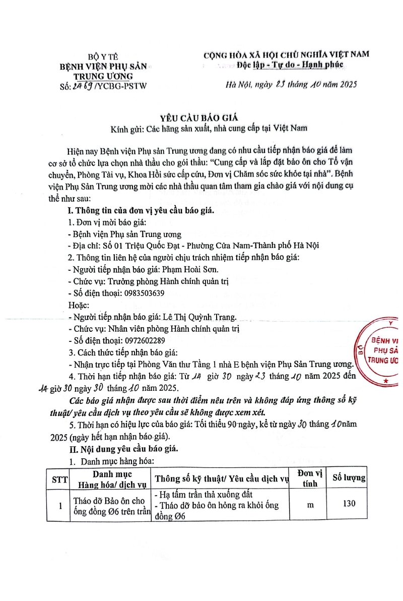 Yêu cầu báo giá số 2442/TB-PSTW ngày 20/10/2025