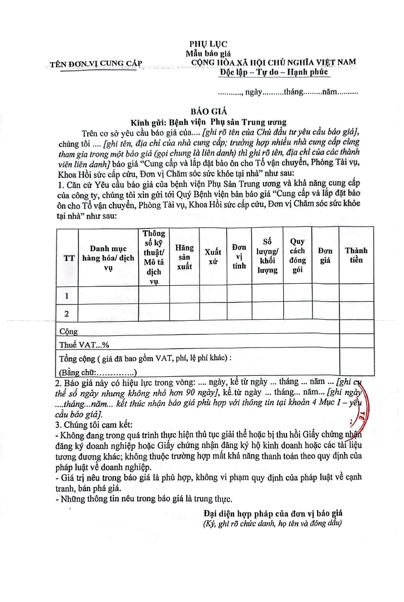 Kính gửi: Các hãng sản xuất, nhà cung cấp tại Việt Nam
