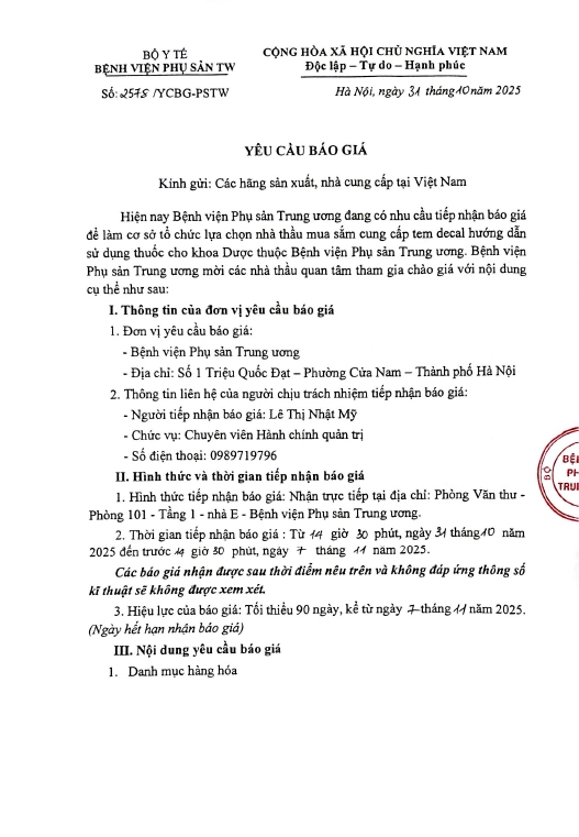 Yêu cầu báo giá số 2545/YCBG-PSTW ngày 31/10/2025