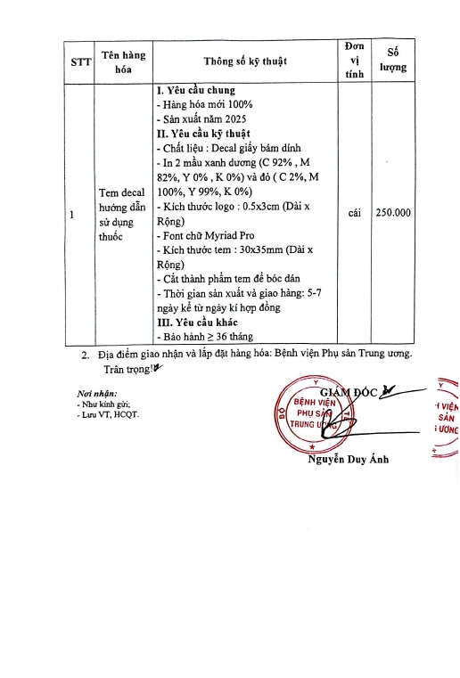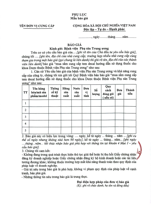 Kính gửi: Các hãng sản xuất, nhà cung cấp tại Việt Nam