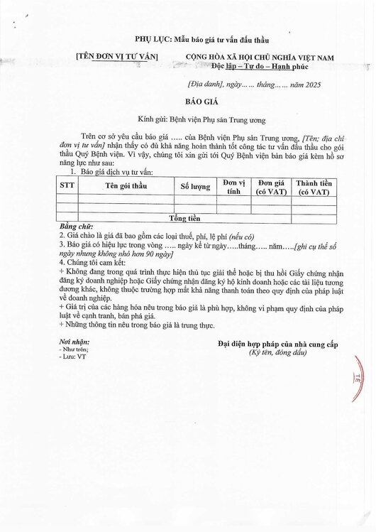 Kính gửi: Các đơn vị cung cấp dịch vụ tư vấn