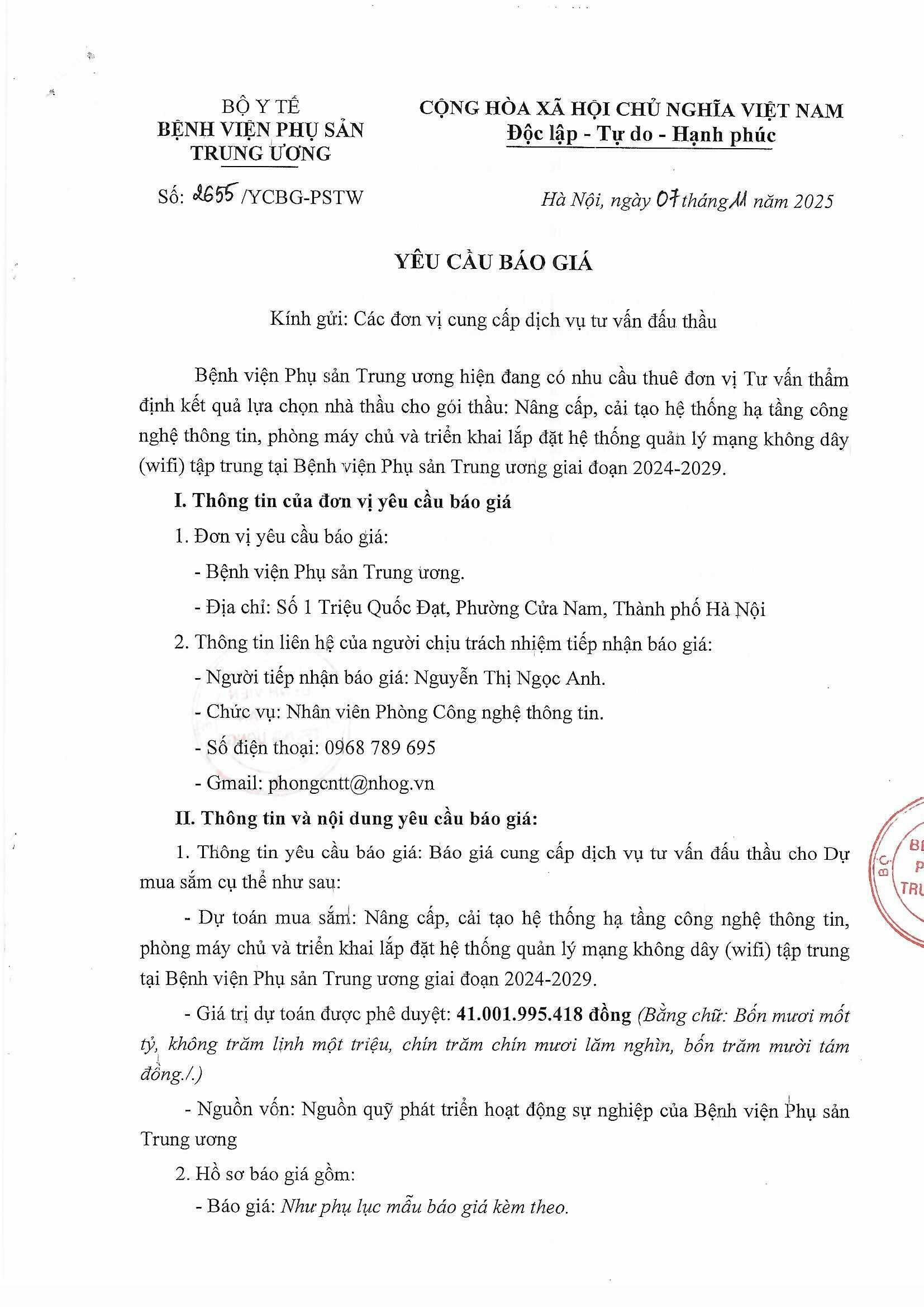 Yêu cầu báo giá số 2655/YCBG-PSTW ngày 07/11/2025