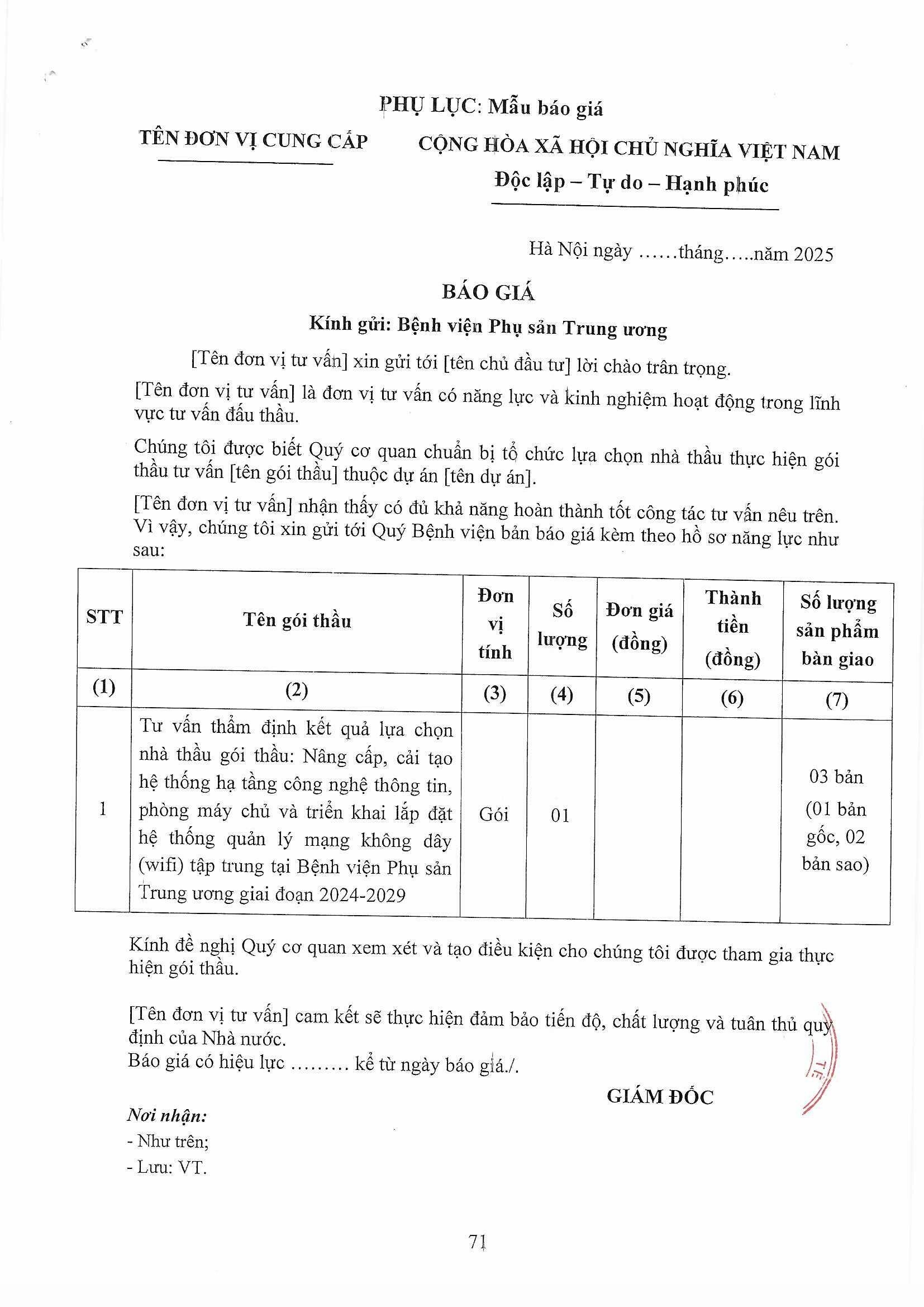 Yêu cầu báo giá số 2619/TM-PSTW ngày 05/11/2025