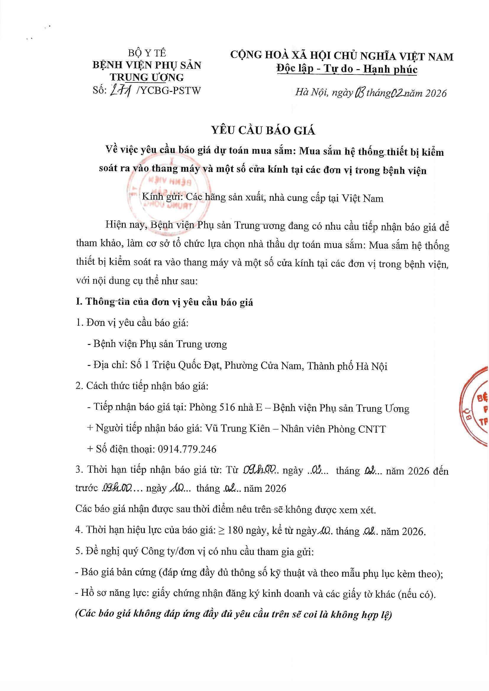 Yêu cầu báo giá số 271/YCBG-PSTW ngày 03/02/2026
