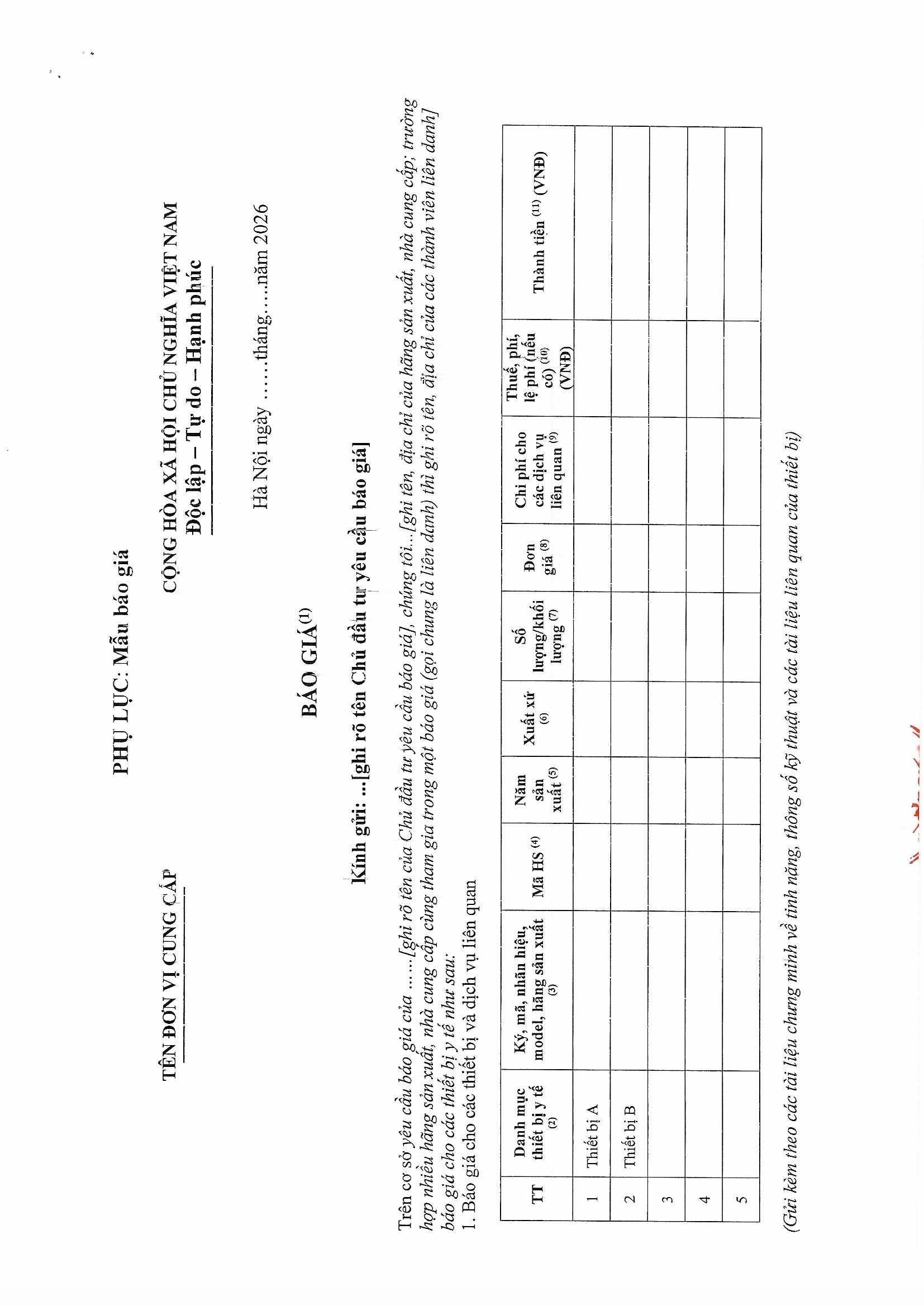 Kính gửi: Các hãng sản xuất, nhà cung cấp tại Việt Nam