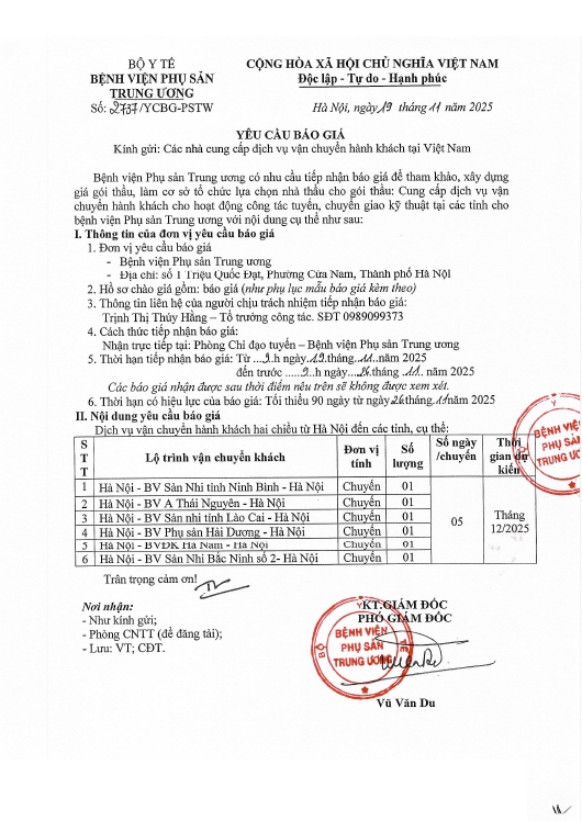 Yêu cầu báo giá số 2735/YCBG-PSTW ngày 18/11/2025