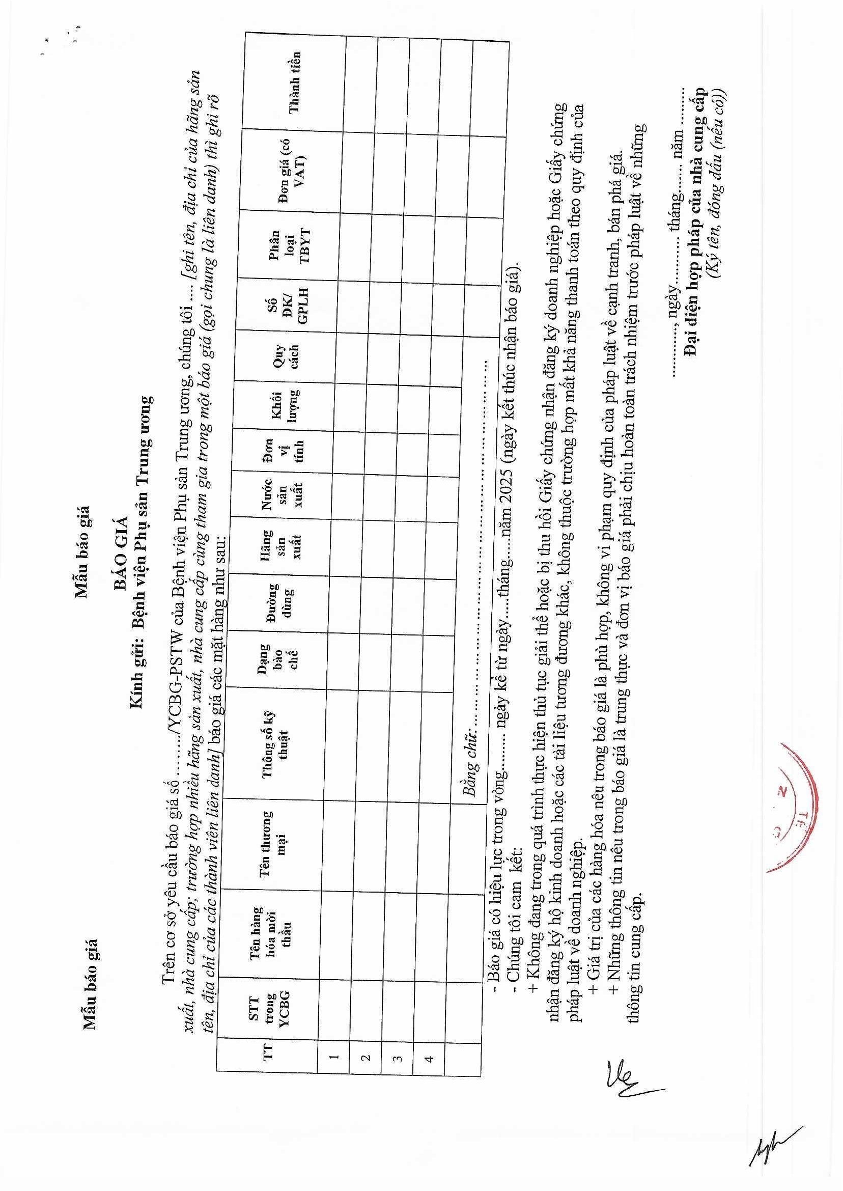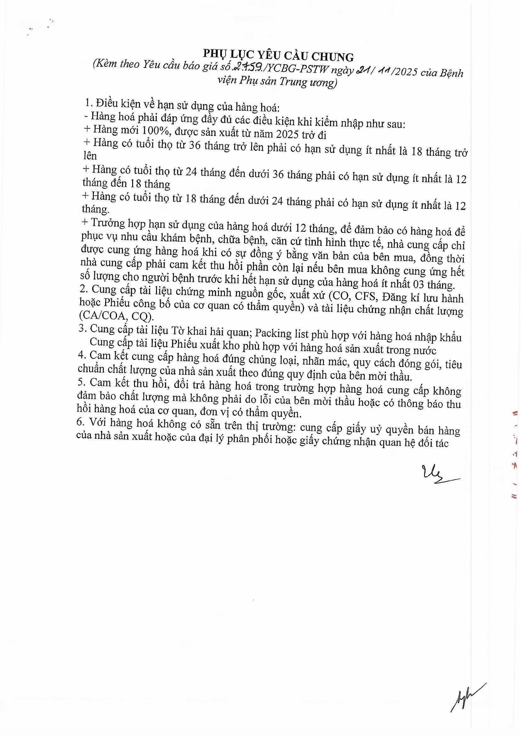 Yêu cầu báo giá 2749/YCBG-PSTW ngày 20/11/2025