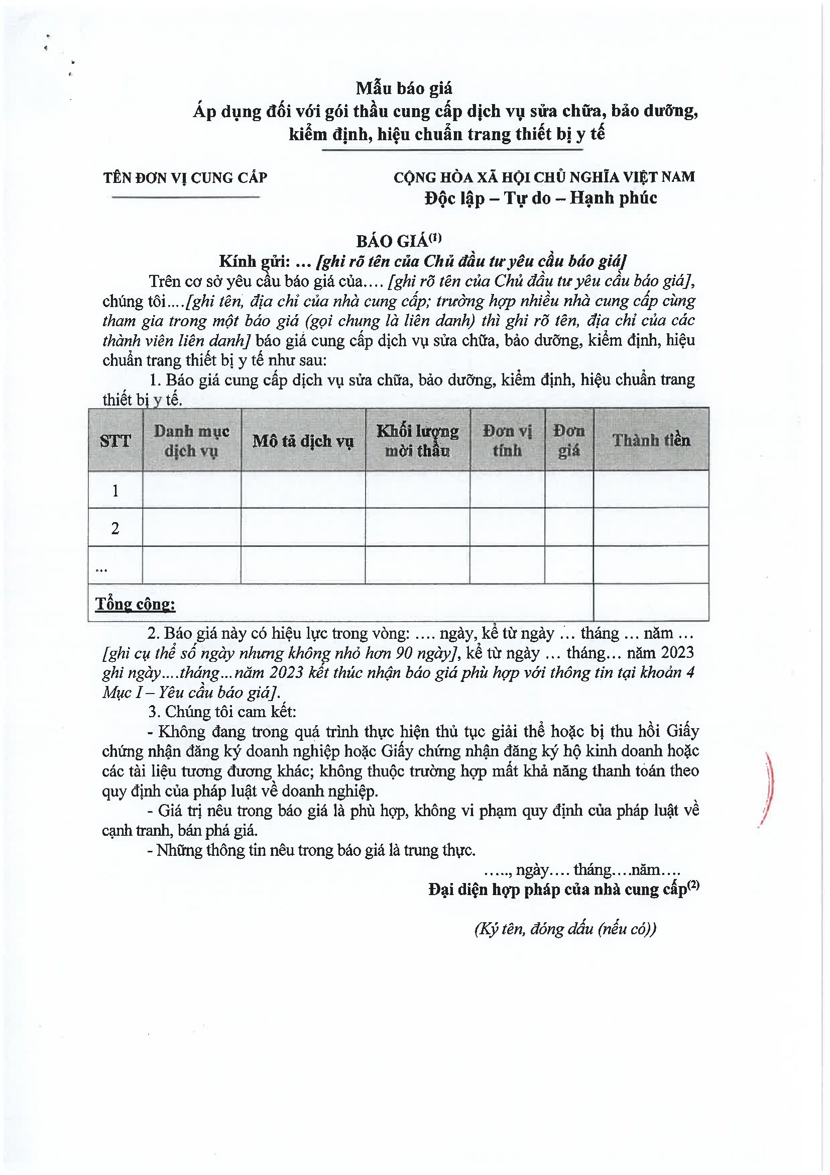 Kính gửi: Các nhà cung cấp dịch vụ tại Việt Nam