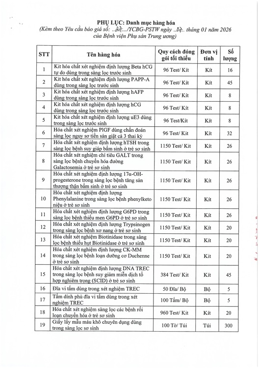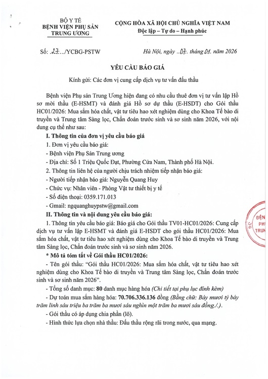 Yêu cầu báo giá số 30/YCBG-PSTW ngày 07/01/2026