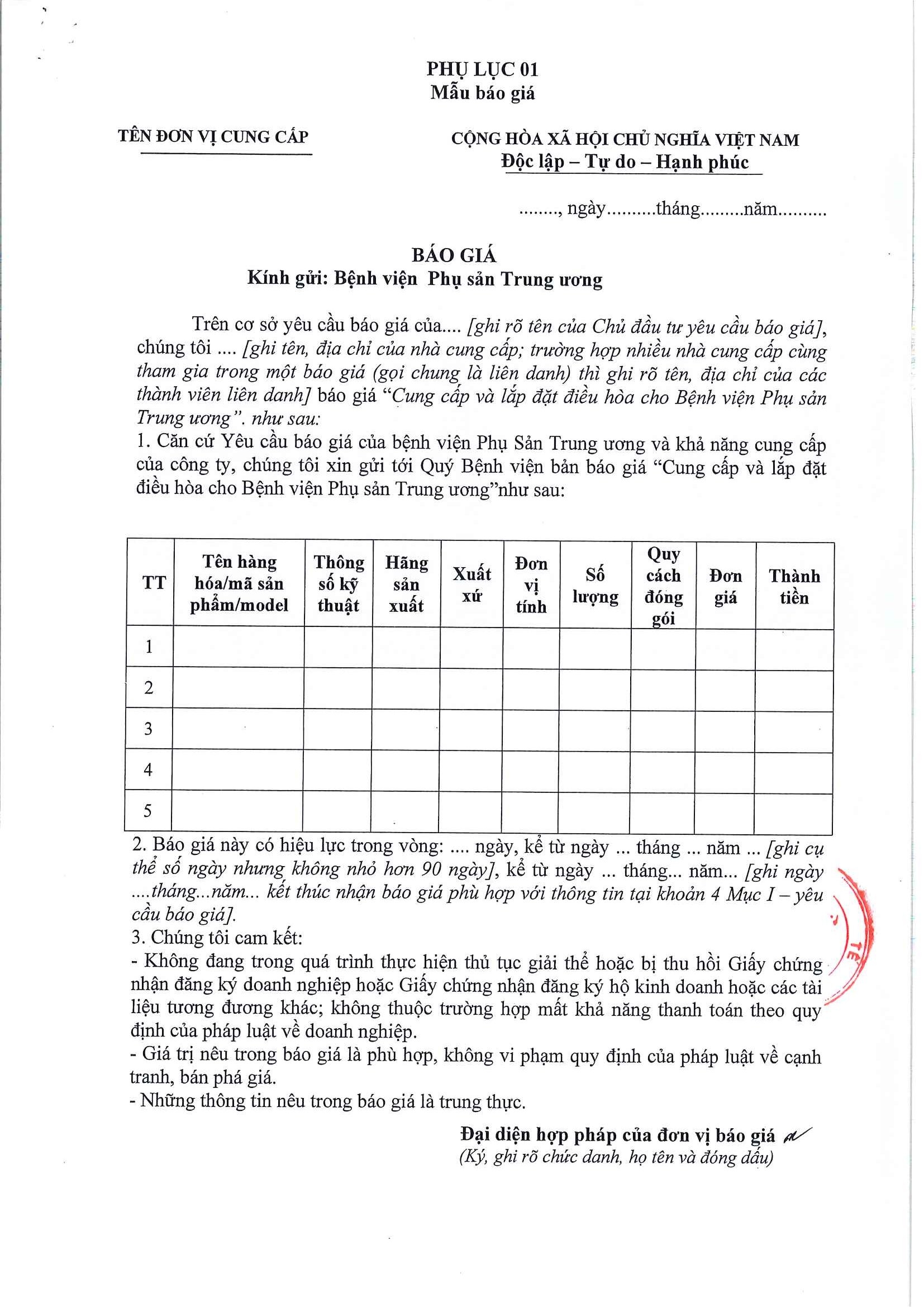 Kính gửi: Các hãng sản xuất, nhà cung cấp tại Việt Nam