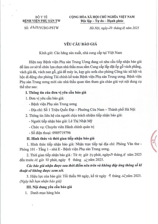Yêu cầu báo giá số 2816/YCBG-PSTW ngày 26/11/2025
