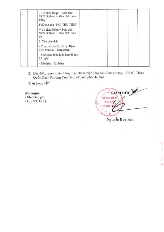 Thông báo của bệnh viện