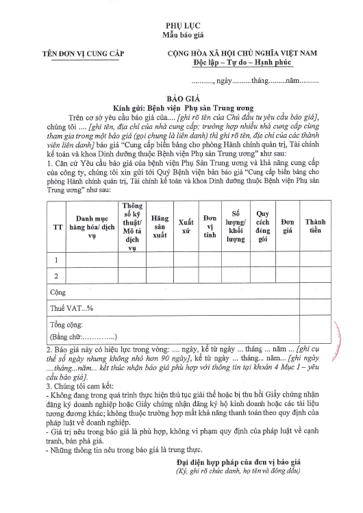 Kính gửi: Các hãng sản xuất, nhà cung cấp tại Việt Nam