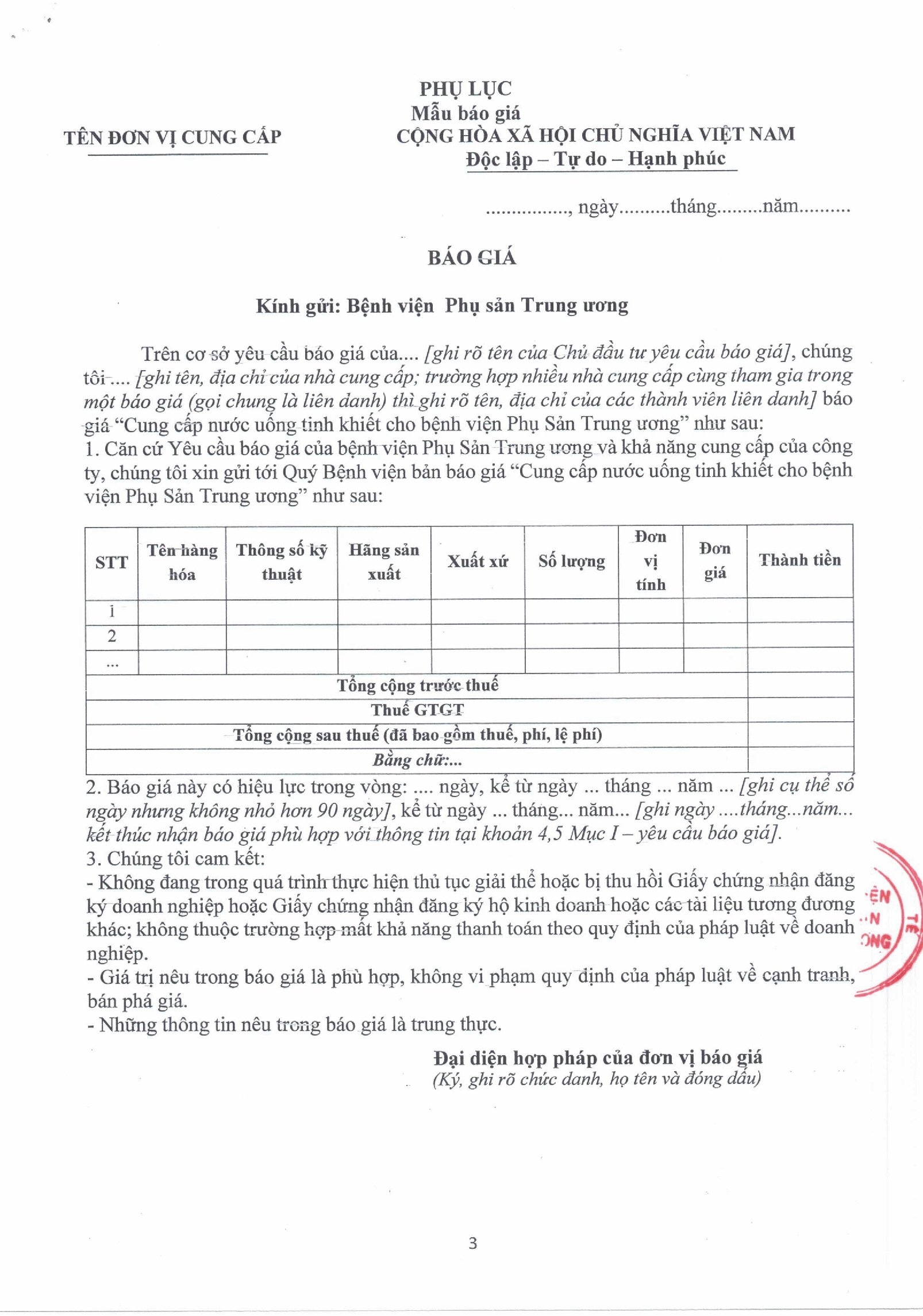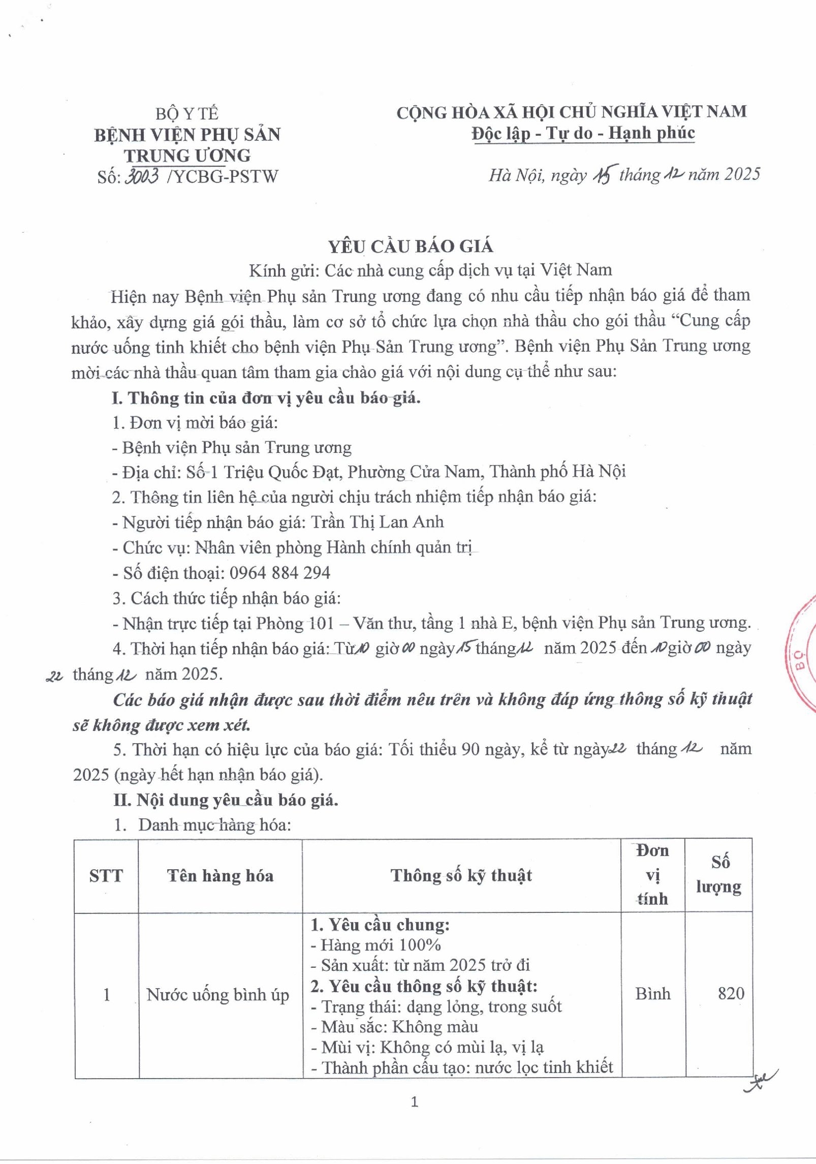 Yêu cầu báo giá số 3003/YCBG-PSTW ngày 15/12/2025